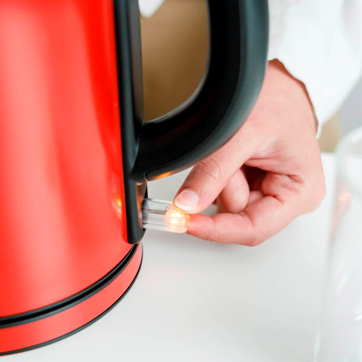 Selene Compact är utrustad med en dold värmeelement, en kabelvinda i basen och en indikatorlampa för på/av. Handtaget är svalt vid beröring för säker hantering, och hela konstruktionen är BPA-fri för din trygghet. Med sin lätta och kompakta design är denna vattenkokare ett utmärkt val för alla kök.