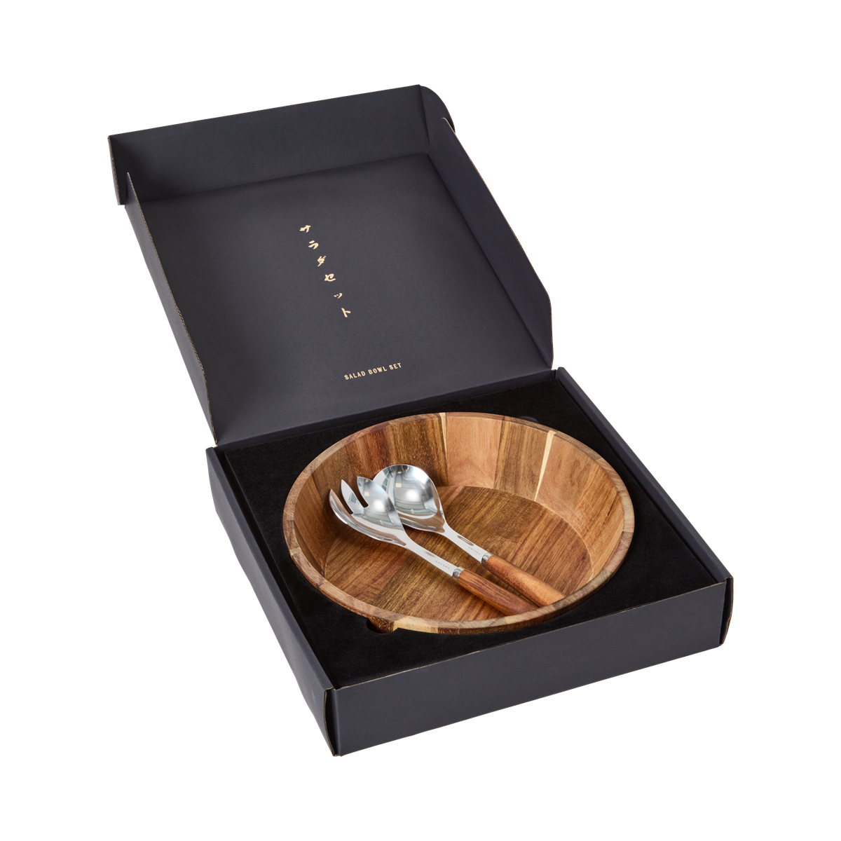 En rymlig salladsskål i vackert oljat akaciaträ som kombinerar naturlig och stram design med funktionalitet. Den breda, låga formen lyfter fram råvarorna och de matchande salladsbesticken gör serveringen komplett. Skål: Ø 29 x 6,5 cm. Bestick: 24 cm.