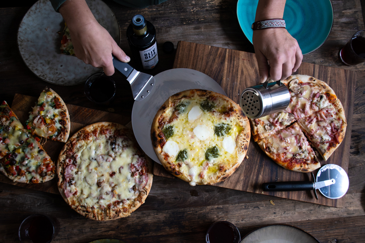 I setet ingår: Pizzaspade – för enkel hantering av pizzor Kryddströare – perfekt för att sprinkla oregano, chiliflakes eller parmesan Pizzaskärare – skär smidigt igenom varje bit med precision
