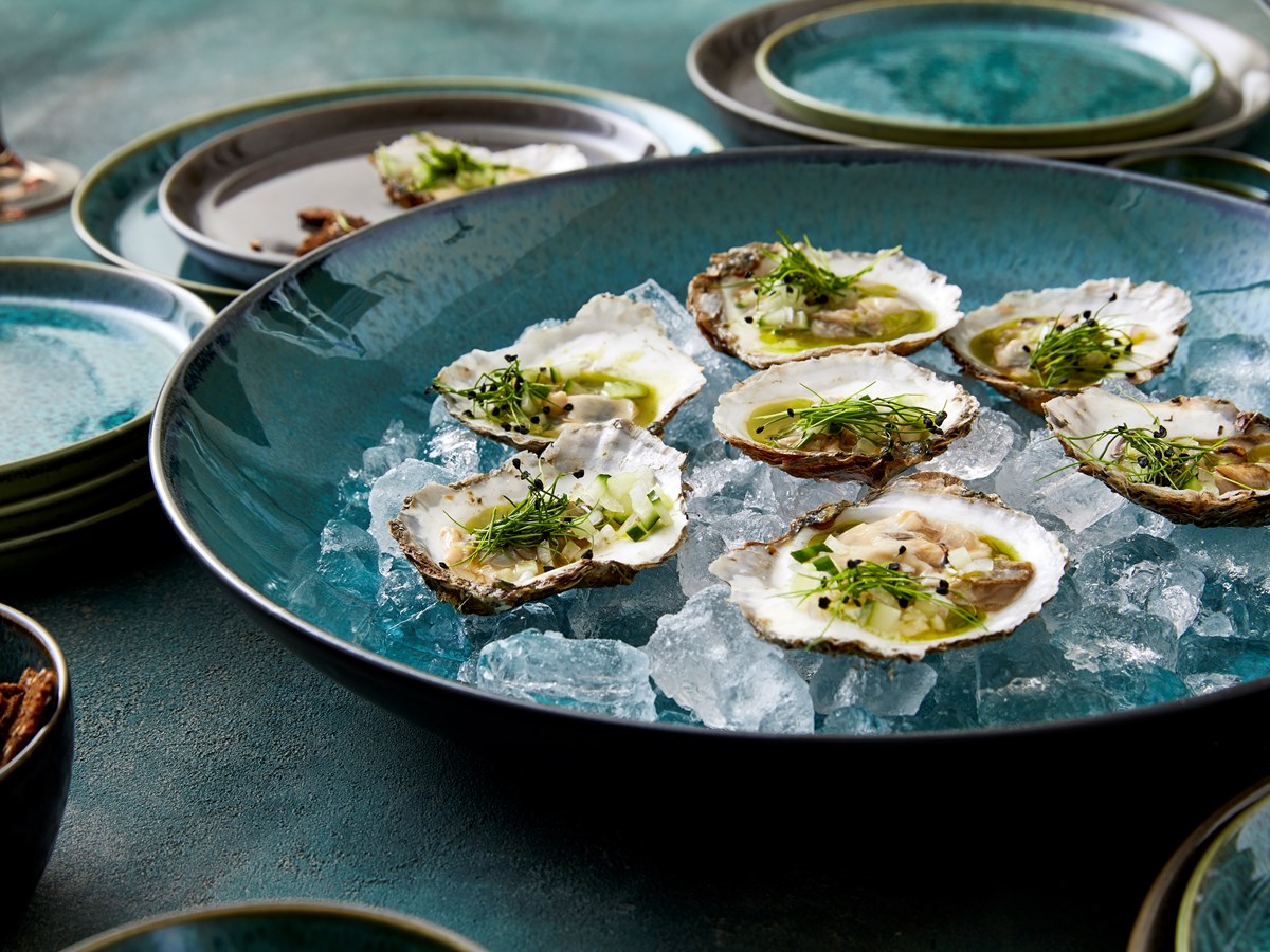 BITZ stort fat, dia. 40 cm med matt reaktiv glasyr på utsidan kombinerat med en fin blank glasyr på insidan. Fatet är imponerande vackert till sallader och anrättningar. Lämpligt till maskindisk, mikrougn och ugn upp till 220 grader.