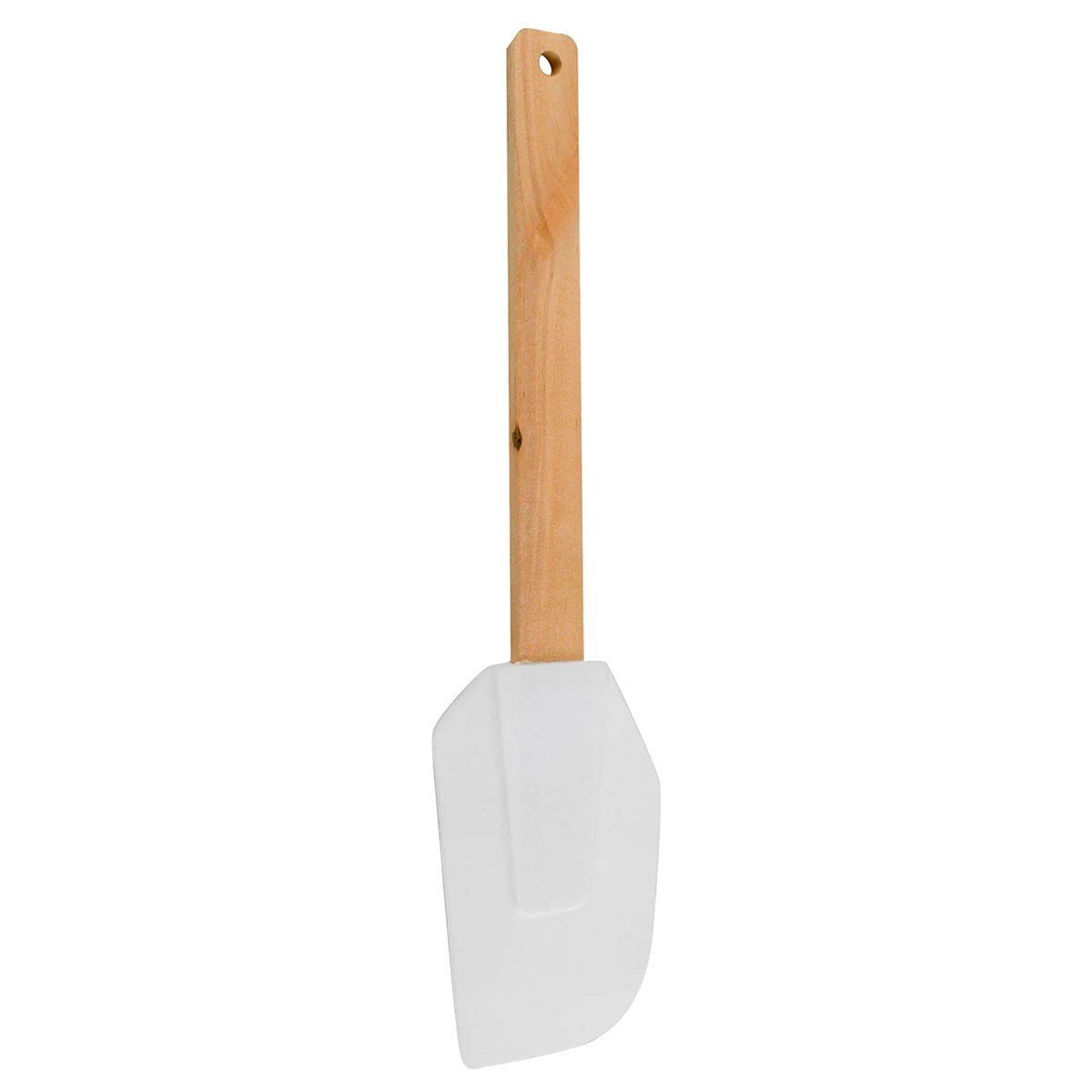 Hållbar slickepott som fungerar utmärkt till såväl matlagningen som till bakningen. Slickepotten har ett skaft i naturfärgat trä med en topp av vit silikon. Skaftet har ett praktiskt hål för enkel upphängning. En tålig slickepott som klarar -50°C till 230°C.