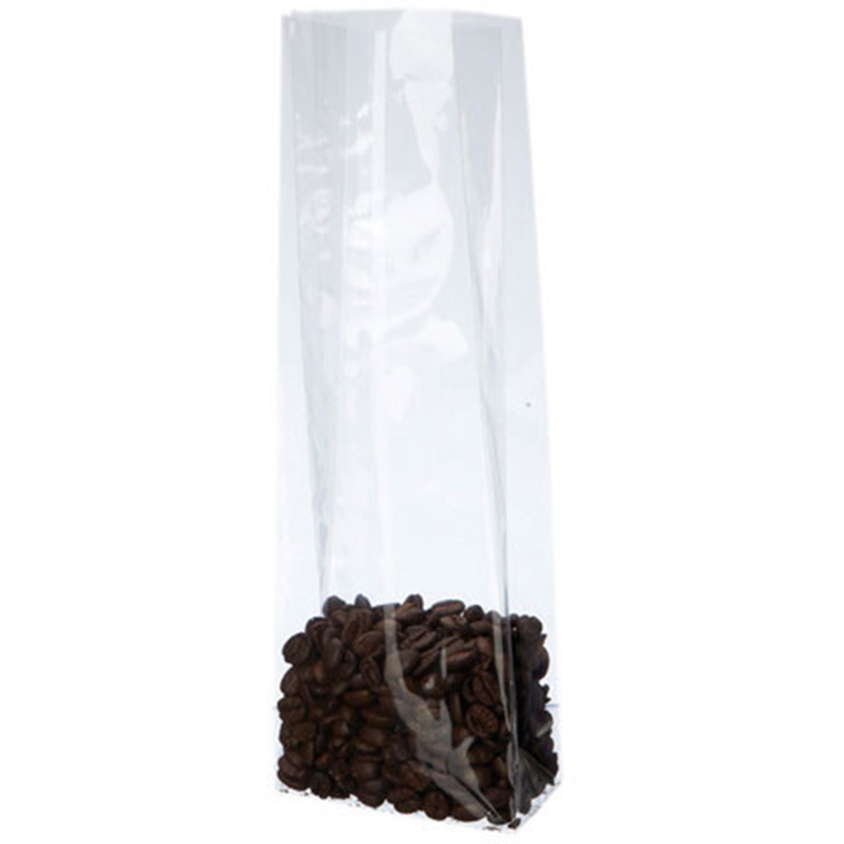 Transparent cellofanpåse med fyrkantsbotten som har bra hållbarhet för att fylla upp med konfektyr eller presenter. Mått: 100/65x220 mm.