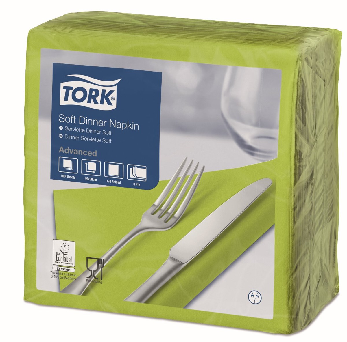 Servett Tork Mjuk 3-lags 39x39 cm lime 100/fp