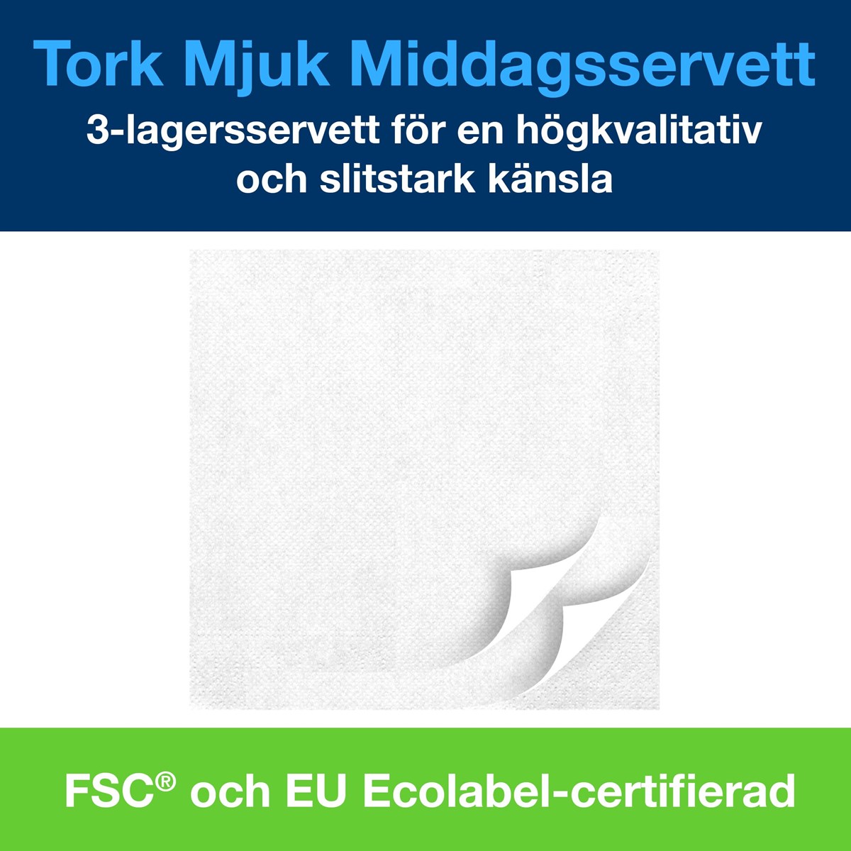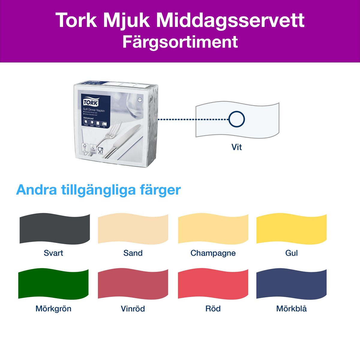 Imponera på dina gäster med vår högkvalitativa Tork Mjuk Middagsservett. Restaurangservetterna har en generös storlek för att förbättra bekvämligheten i avslappnade restauranger. Dessutom är 3-lagersservetterna utformade för att vara hela måltiden, vilket minskar förbrukningen och kostnaderna. Deras tjocklek och storlek gör att personal enkelt kan vika servetterna, vilket underlättar bordsförberedelser. Tack vare vårt stora utbud av moderna och klassiska nyanser är det enkelt att hitta en färg som matchar din inredning.