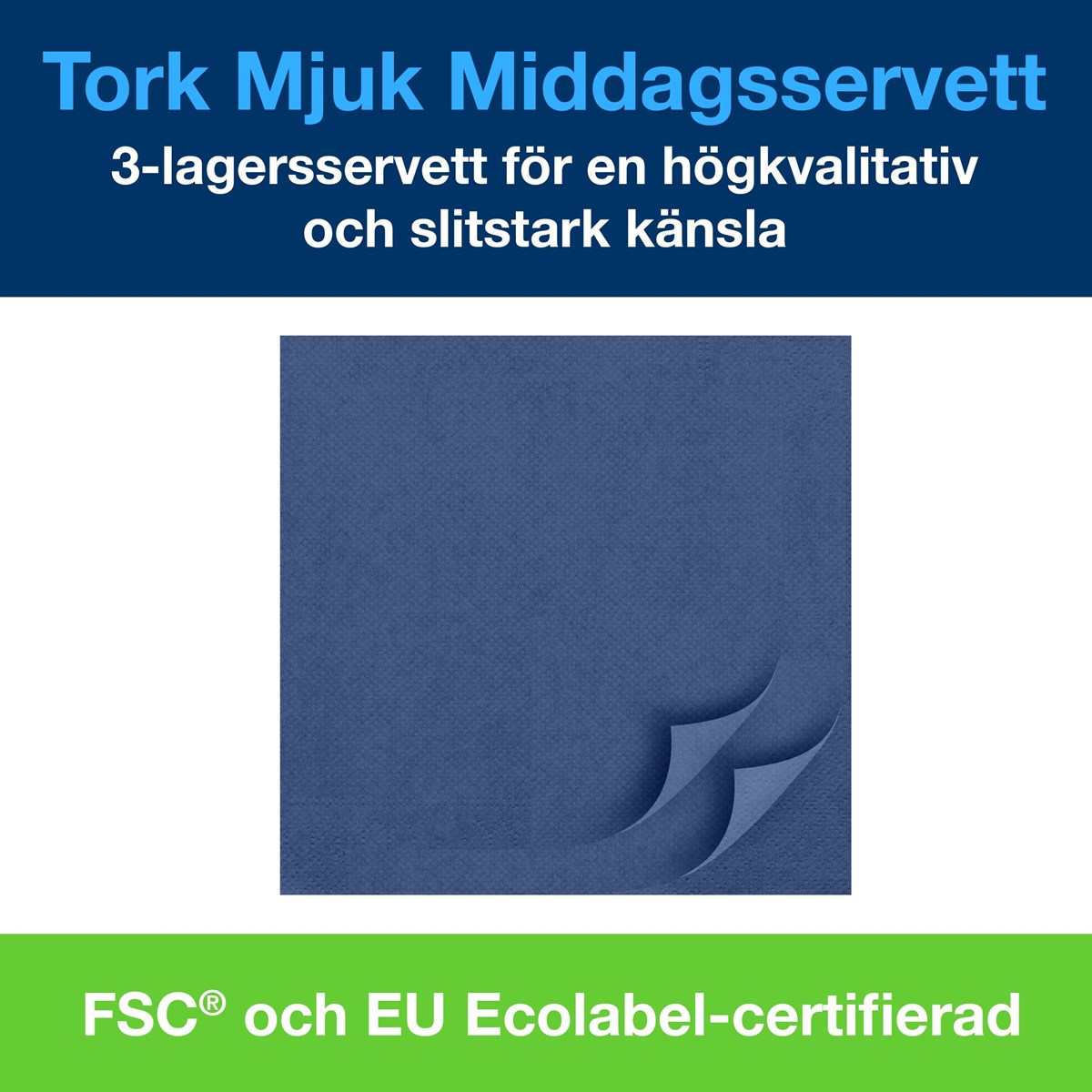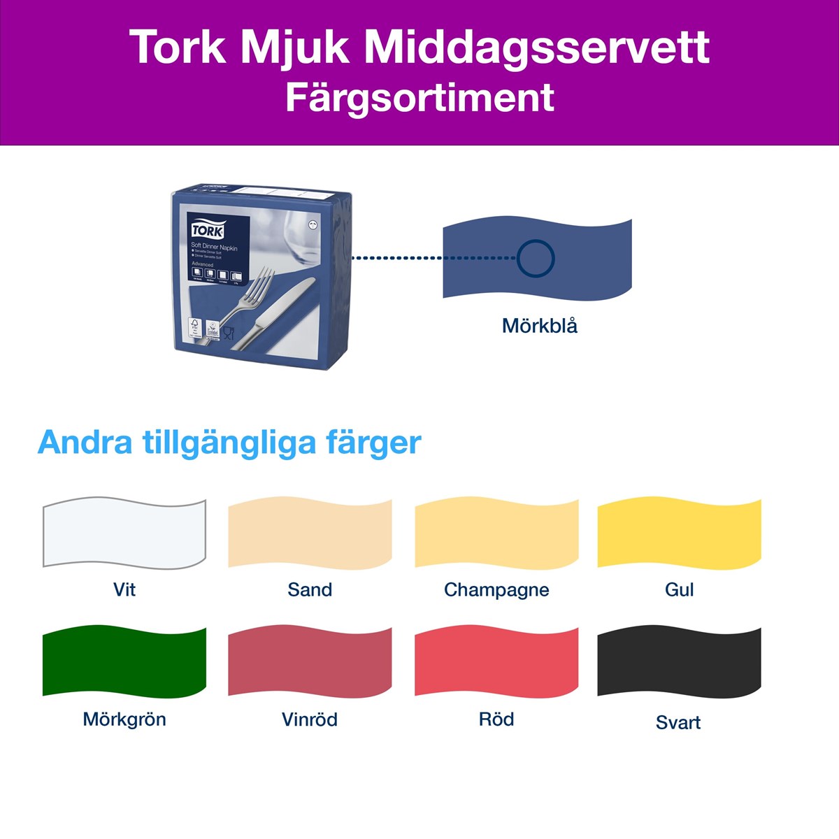 Imponera på dina gäster med vår högkvalitativa Tork Mjuk Middagsservett. Restaurangservetterna har en generös storlek för att förbättra bekvämligheten i avslappnade restauranger. Dessutom är 3-lagersservetterna utformade för att vara hela måltiden, vilket minskar förbrukningen och kostnaderna. Deras tjocklek och storlek gör att personal enkelt kan vika servetterna, vilket underlättar bordsförberedelser. Tack vare vårt stora utbud av moderna och klassiska nyanser är det enkelt att hitta en färg som matchar din inredning.
