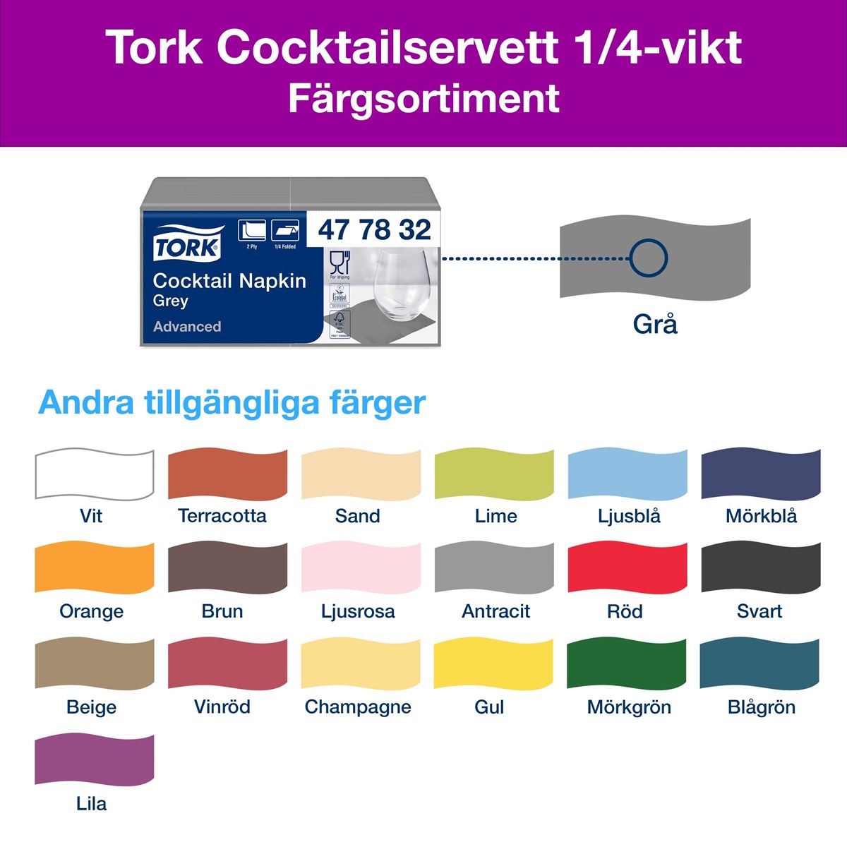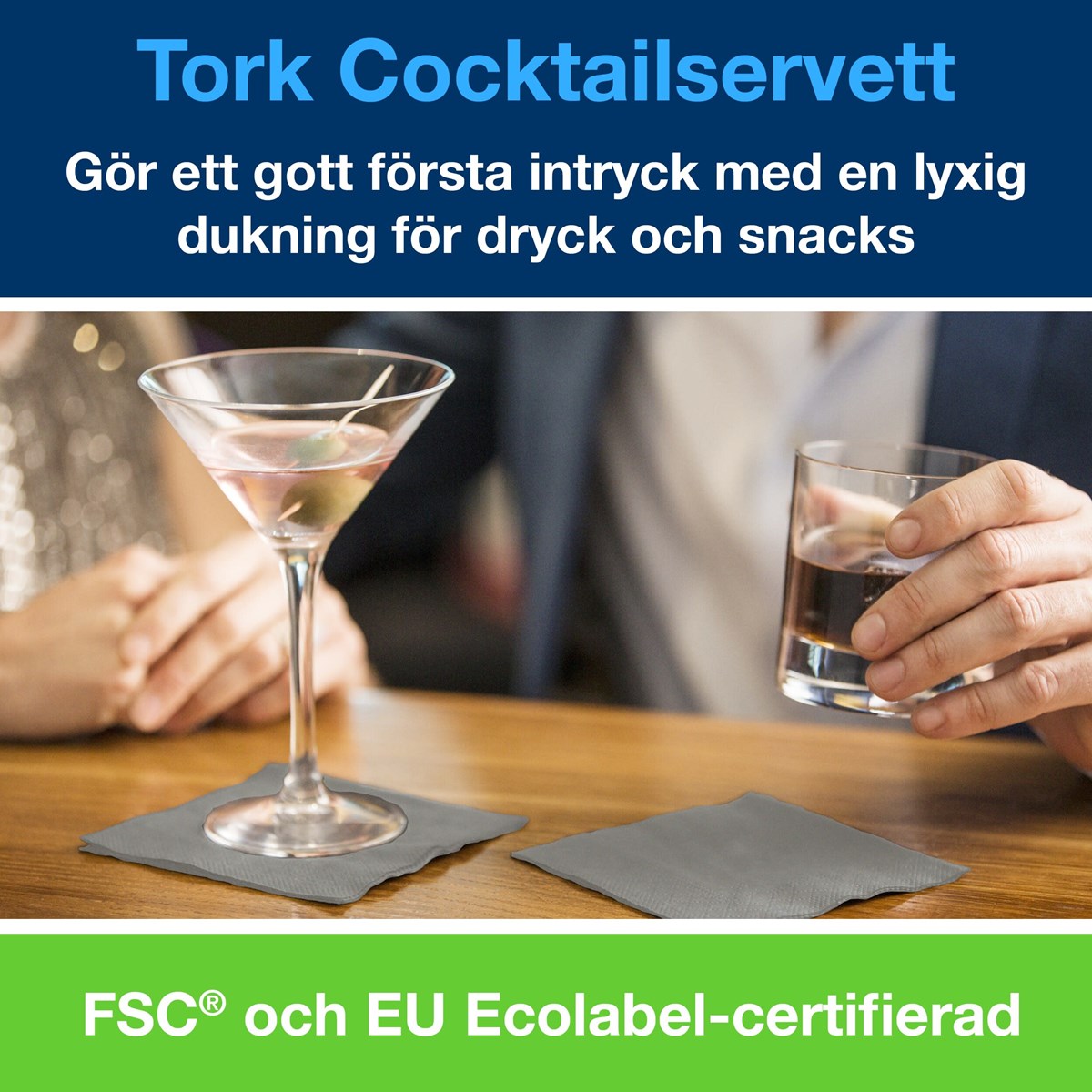 Första intrycket är avgörande i barer och på caféer. Försäkra dig om att gäster njuter av sina snacks- och dryckesupplevelser med vår högkvalitativa Tork Cocktailservett. 2-lagersservetten är tålig nog för att vara under gästernas hela sittningar, vilket leder till en långvarig kundnöjdhet. Gör dig av med engångsservetterna efter varje sittning för att behålla hygienen på en hög nivå och se till att dina bord ser eleganta ut med utbudet av klassiska och moderna färger.