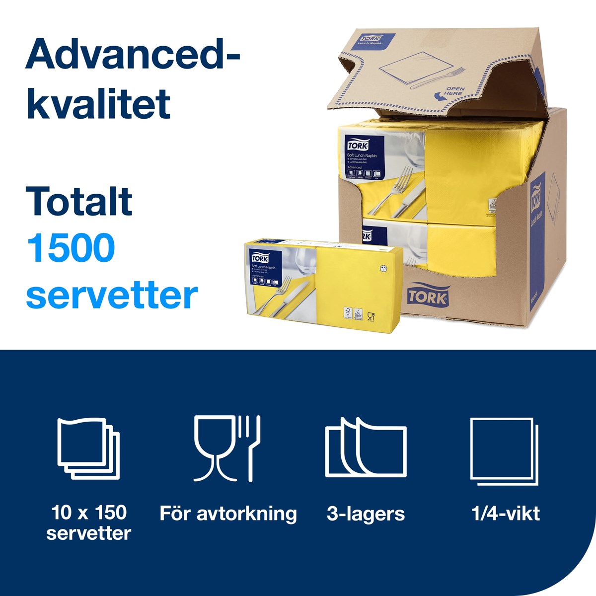 Med vårt breda urval av moderna och klassiska färger kan du enkelt matcha servetterna med din nuvarande restauranginredning. 3-lagers, Advanced-kvalitet. Vikt storlek: 16x4x16,25 cm. Ovikt storlek: 32,8x32,5 cm. 150 servetter/förp., 10 förp./kartong.