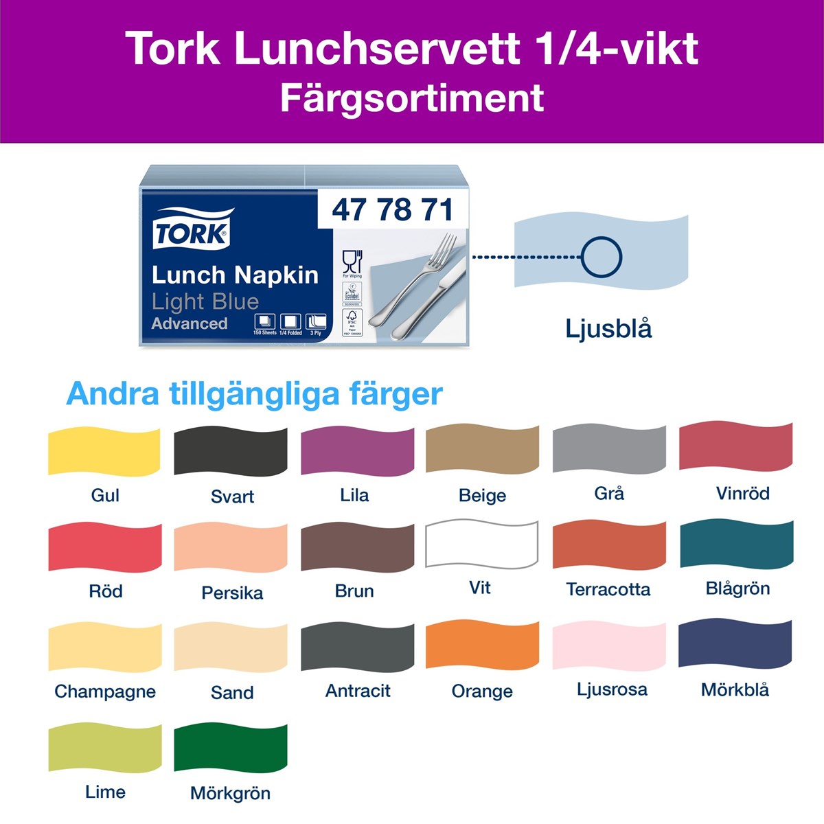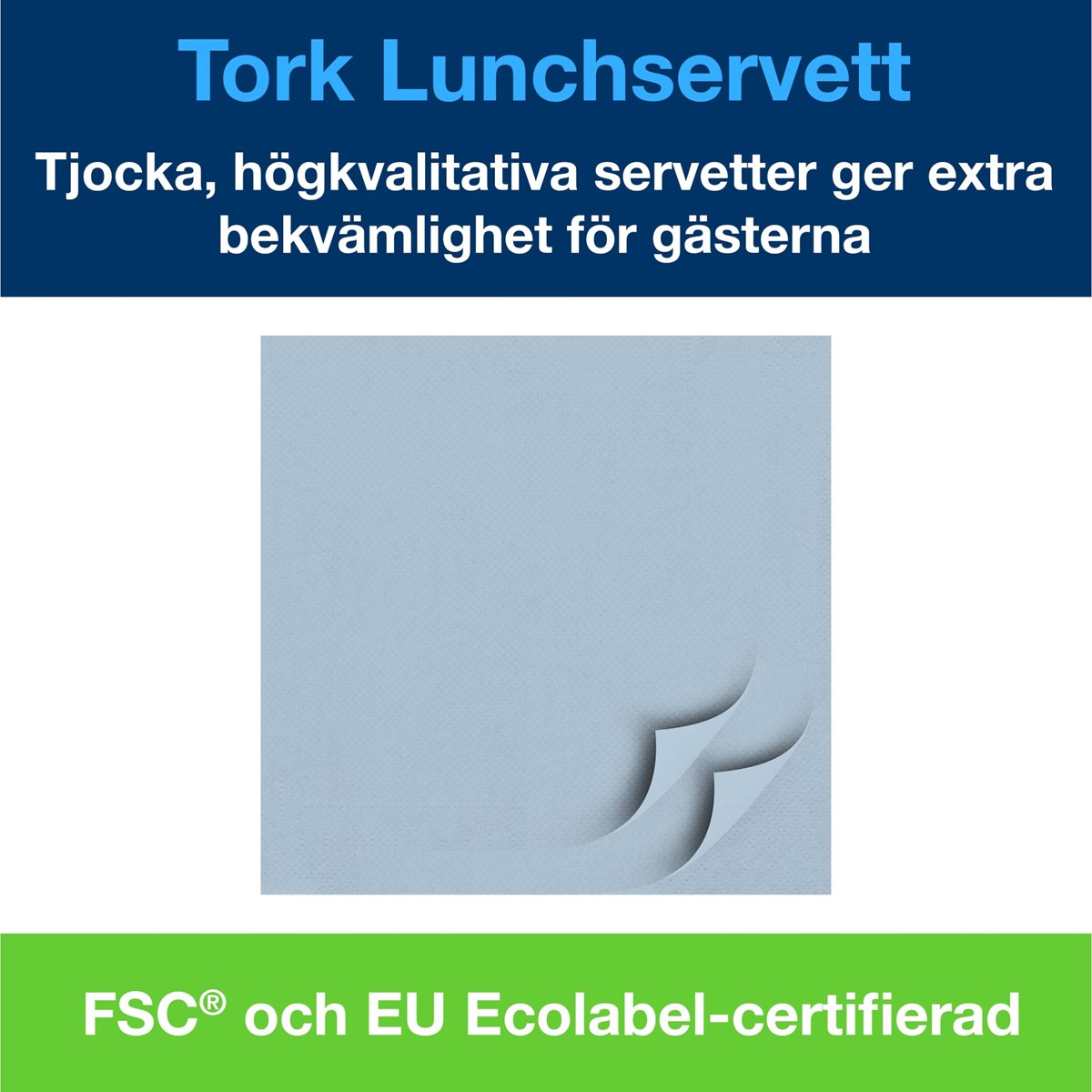 Servetter i lunchstorlek som uppfyller dina funktions- och kostnadskrav Perfekta för lättare måltider eller snacks Högabsorberande 3-lagerskonstruktion Hög kvalitet och tjocklek för extra bekvämlighet Brett urval av färger som passar din inredning