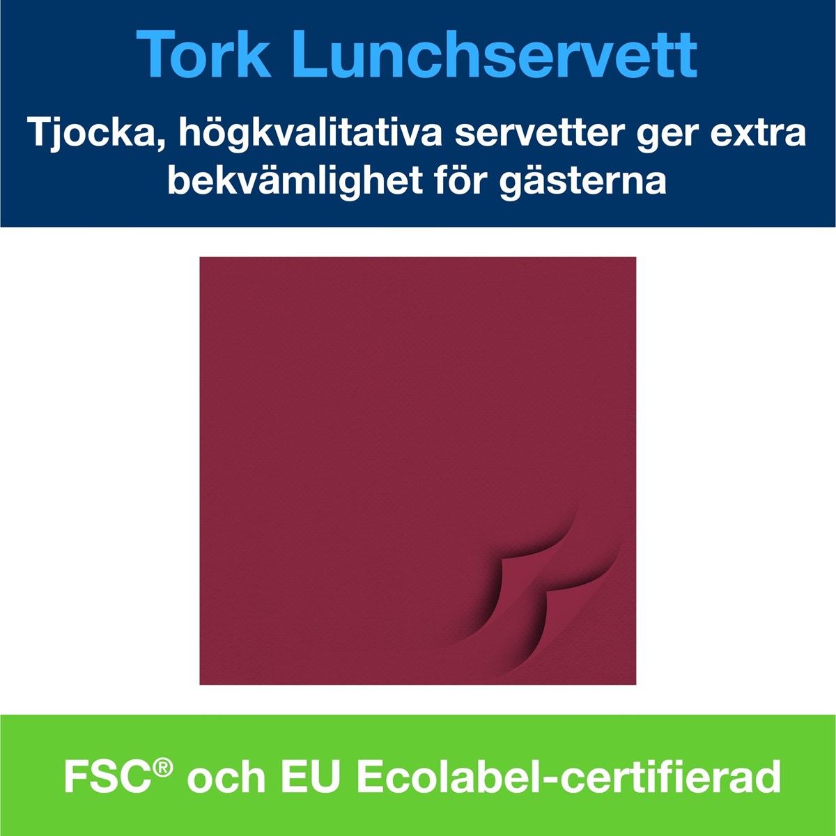 Servetter i lunchstorlek som uppfyller dina funktions- och kostnadskrav Perfekta för lättare måltider eller snacks Högabsorberande 3-lagerskonstruktion Hög kvalitet och tjocklek för extra bekvämlighet Brett urval av färger som passar din inredning