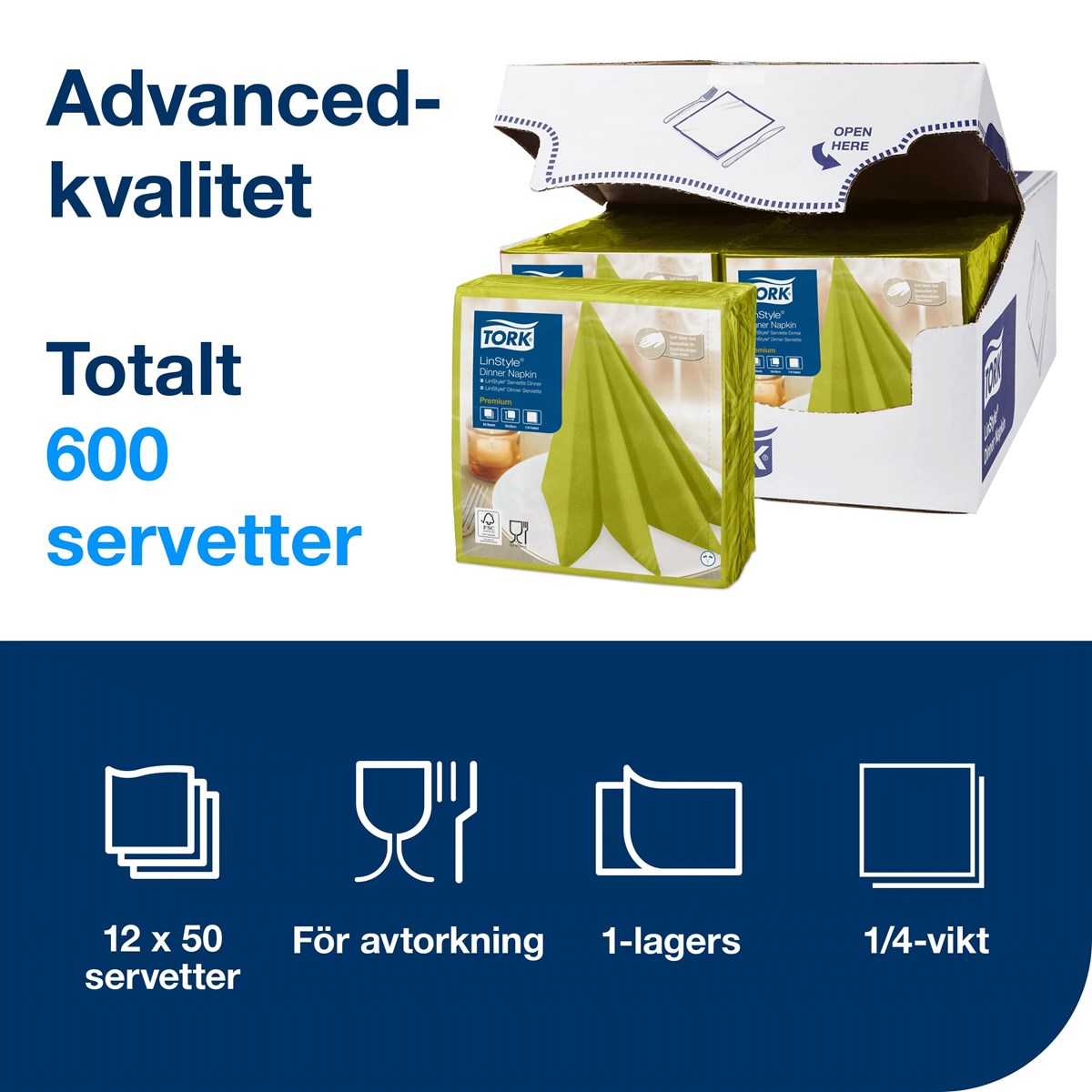 Gör ett fantastiskt första intryck i fullbetjäningsrestauranger med högkvalitativa LinStyle® Middagsservett. Med sin känsla av linne är den mjukare och tjockare än vanliga pappersservetter och ger ett elegant intryck. Suverän hållbarhet gör att restaurangservetterna varar under hela middagen, vilket minskar kostnader och förbrukning. Samtidigt ser den höga absorptionsförmågan till att personal enkelt kan städa upp spill. Med engångsservetter slipper personalen också tvättbesvären som kommer med textilservetter. 1-lagers. Premium-kvalitet. Mått vikt: 19,5x19,5 cm. Mått ovikt: 39x39 cm.