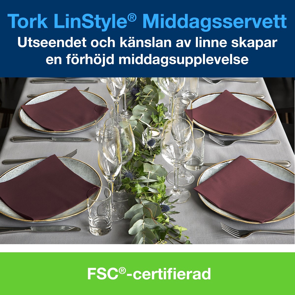 Gör ett fantastiskt första intryck i fullbetjäningsrestauranger med högkvalitativa LinStyle® Middagsservett. Med sin känsla av linne är den mjukare och tjockare än vanliga pappersservetter och ger ett elegant intryck. Suverän hållbarhet gör att restaurangservetterna varar under hela middagen, vilket minskar kostnader och förbrukning. Samtidigt ser den höga absorptionsförmågan till att personal enkelt kan städa upp spill. Med engångsservetter slipper personalen också tvättbesvären som kommer med textilservetter. 1-lagers. Premium-kvalitet. Mått vikt: 19,5x19,5 cm. Mått ovikt: 39x39 cm.