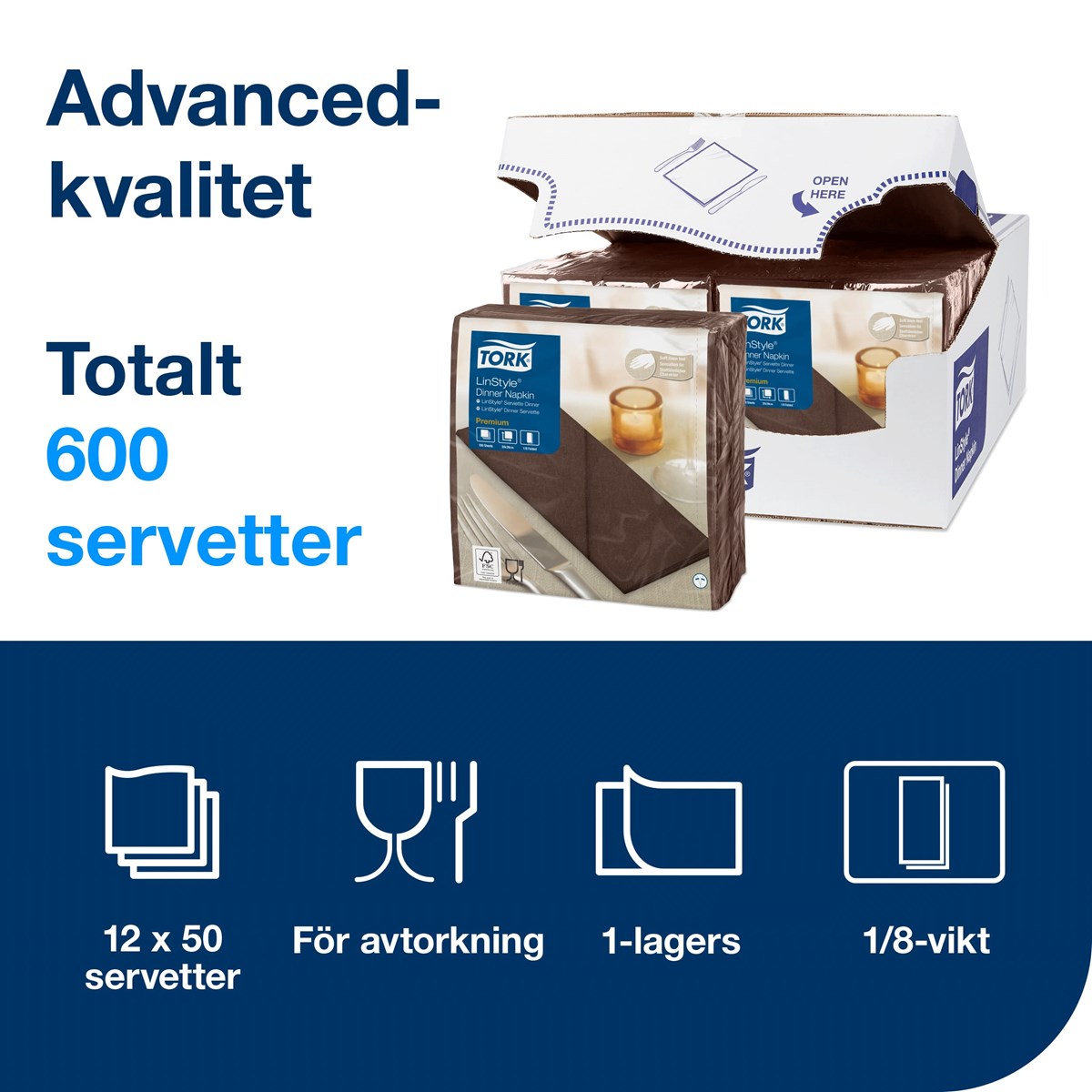 Servetter Tork Linstyle 1/8 39x39 cm kakao 50/fp