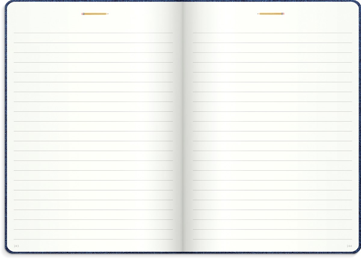 Inbunden odaterad kalender med två märkband. Omslag i blått konstläder och silverprägling. Ett planeringsverktyg för att uppnå sina drömmar och mål. Kalendern innehåller sidor med plats för mål, reflektioner, moodboards, checklistor, bucket lists, födelsedagar och anteckningar. Kalendern är uppbyggd för olika mål: årsmål, halvårsmål, samt delmål månads- och veckovis. Skriv ner månadens prestationer, utmaningar och förbättringar. Kalendern innehåller även prickade sidor för att locka fram användarens mest kreativa sidor. 100 g cremefärgat papper, 128 blad (256 sidor). FSC®-papper. Format: 165x233 mm.