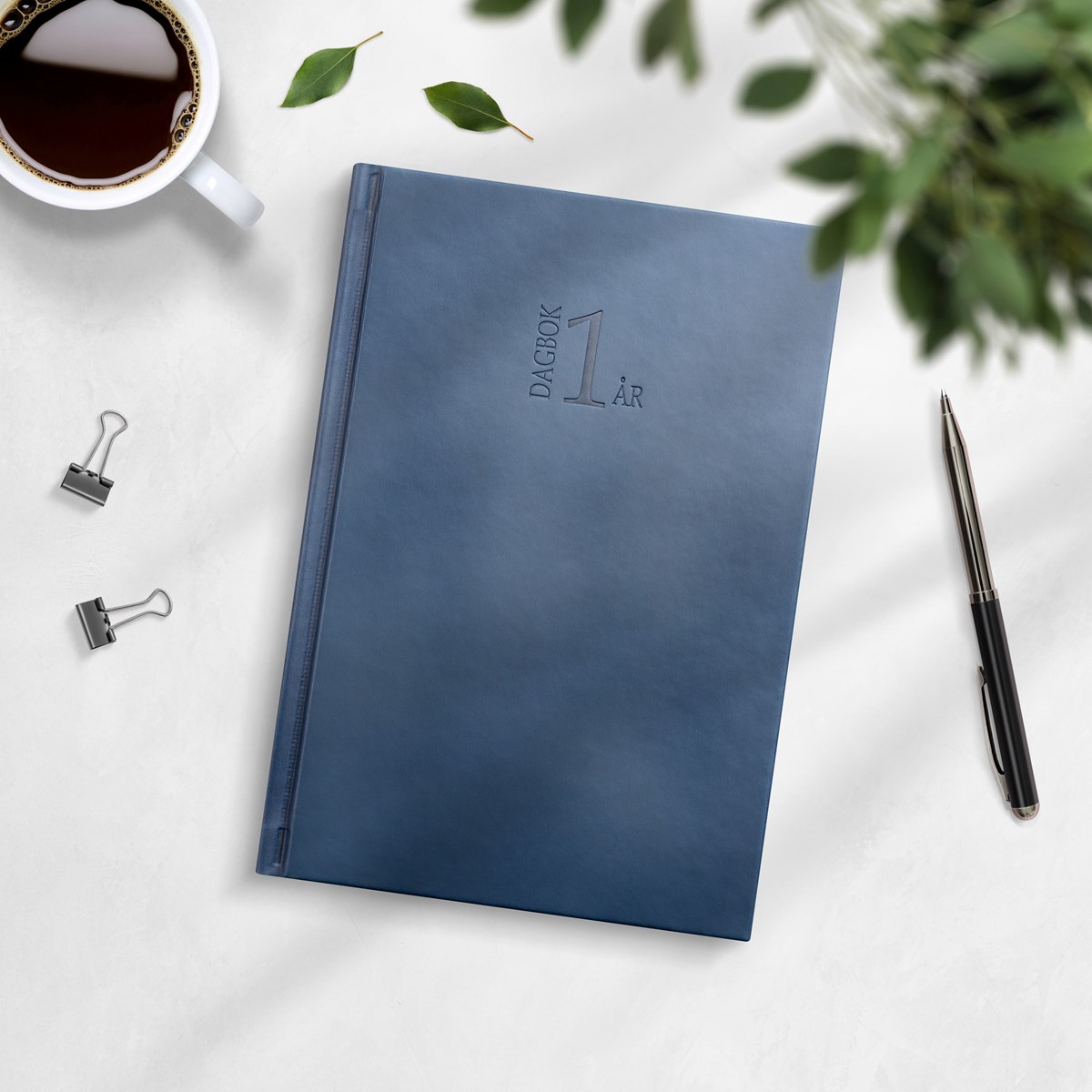 Format: 142x205 mm. Layout: Dag/sida. Kalendarium: 2026-01-01 - 2026-12-31. Omslag: Konstläder. Inbunden. Detaljer: Märkband. Innehåll: Kyrkliga helgdagar, Flaggdagar, Helgdagar/aftnar, Månfaser, Namnsdagar, Temadagar/händelser, Vädernoteringar, Årsöversikt/årsöversikter, Årsplan/årsplaner. Antal sidor: 384.