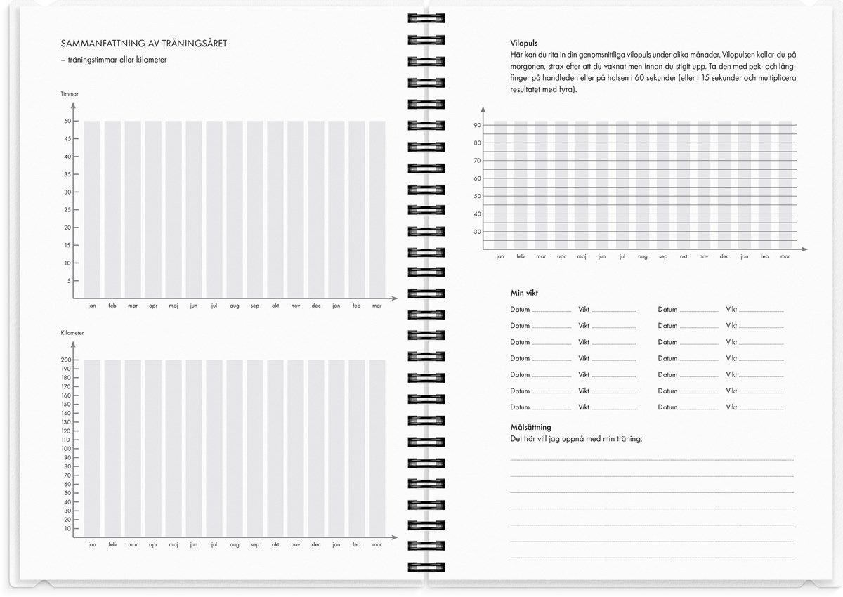 Träningskalendern hjälper dig att få sunda vanor i din vardag, men även att behålla dem över tid. Kalendern passar dig som vill ha en allsidig träning med en kombination av löpning och styrketräning. Det ingår även ett program för dig som vill komma i gång med meditation och andningsövningar så att den mentala träningen blir en naturlig del av din vardag också. Båda programmen är signerade löpcoachen och PT:n Jenny Sunding. Jenny ger också hälsosamma tips som håller inspirationen vid liv hela året. På varje uppslag finns dels en kalendersida med veckoplanering och dels en aktivitetssida. Träningskalendern har ett funktionellt plastomslag för att kunna följa med dig på träningspassen och även 2 framsidor att växla mellan.