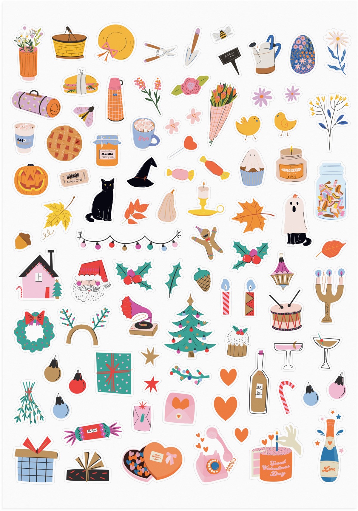 Kalendern kommer i en helt ny, exklusiv bindning med hårdpärm och gömd spiral. Tre ark med färgglada klistermärken att dekorera med ingår.