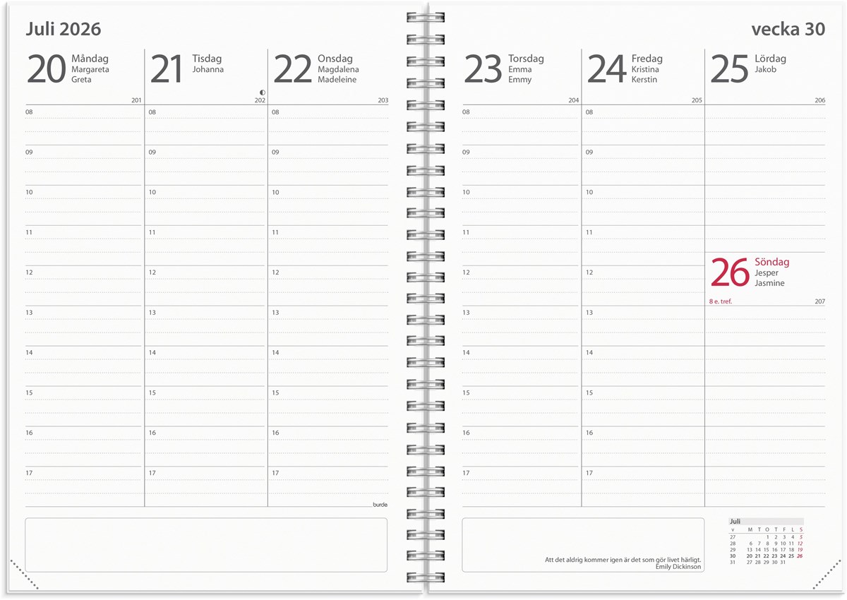 Study A5 är en praktisk kalender för den studerande. Med en stående layout samt timindelning 8-17 hjälper kalendern dig att behålla strukturen genom hela läsåret. Det finns även utrymme för att skriva upp årsplaner, scheman och provresultat för att lättare kunna reflektera över akademisk utveckling. För att underlätta organiseringen har Study även en praktisk förvaringsficka. Allt du behöver för ett framgångsrikt läsår!