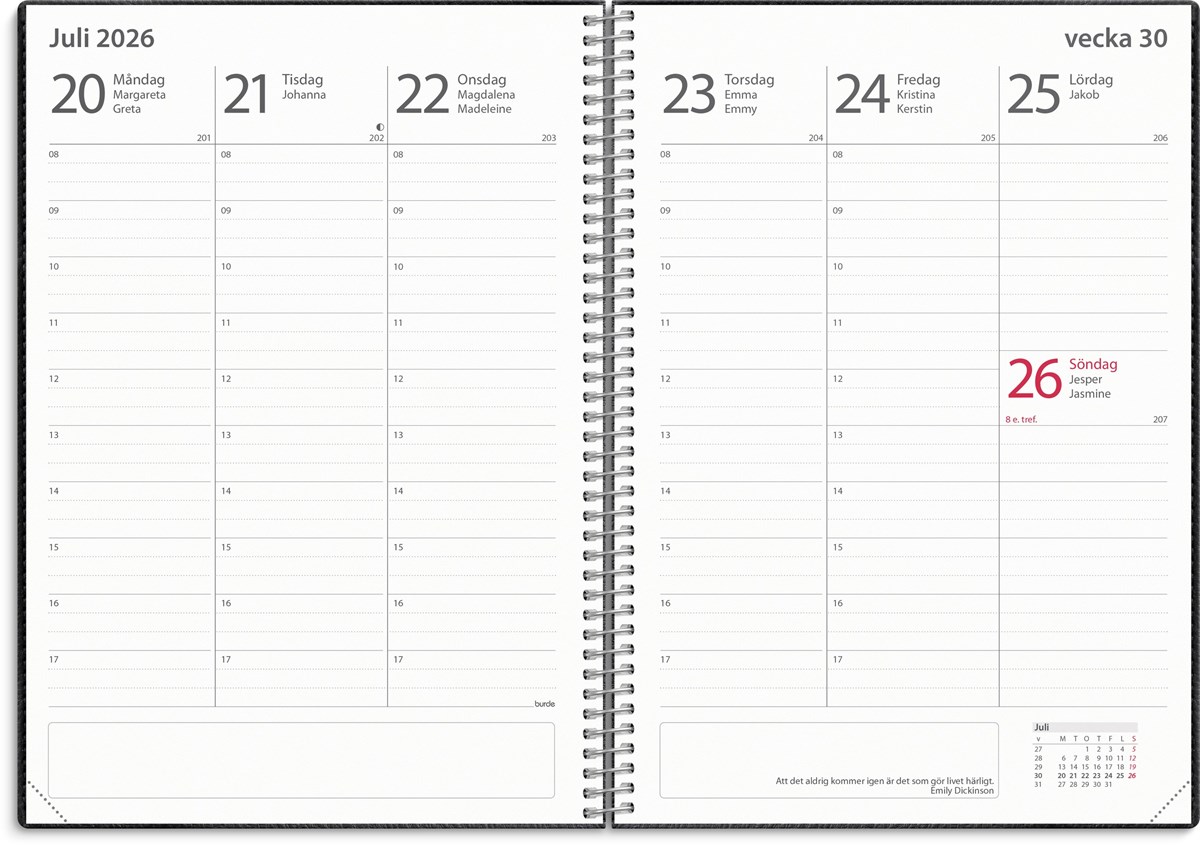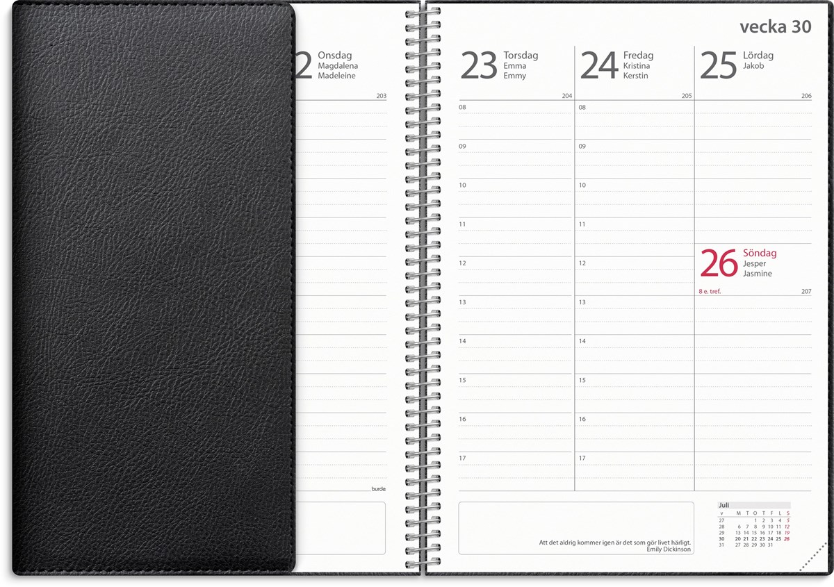 Study A5 är en praktisk kalender för den studerande. Med en stående layout samt timindelning 8-17 hjälper kalendern dig att behålla strukturen genom hela läsåret. Det finns även utrymme för att skriva upp årsplaner, scheman och provresultat för att lättare kunna reflektera över akademisk utveckling. För att underlätta organiseringen har Study även en praktisk förvaringsficka. Allt du behöver för ett framgångsrikt läsår! Omslaget Twist är i en sammetsmjuk skinnimitation med en användbar flärp som kan fungera som bokmärke för att enkelt förflytta dig i kalendern.