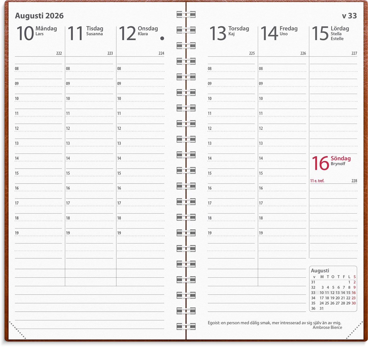 Kalender 2026 Interplano cognac konstläder