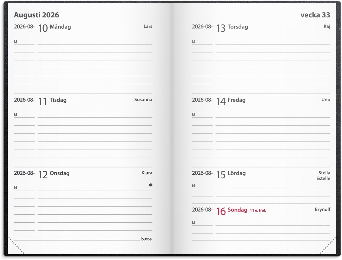 Kalender 2026 Leader svart konstläder inbunden