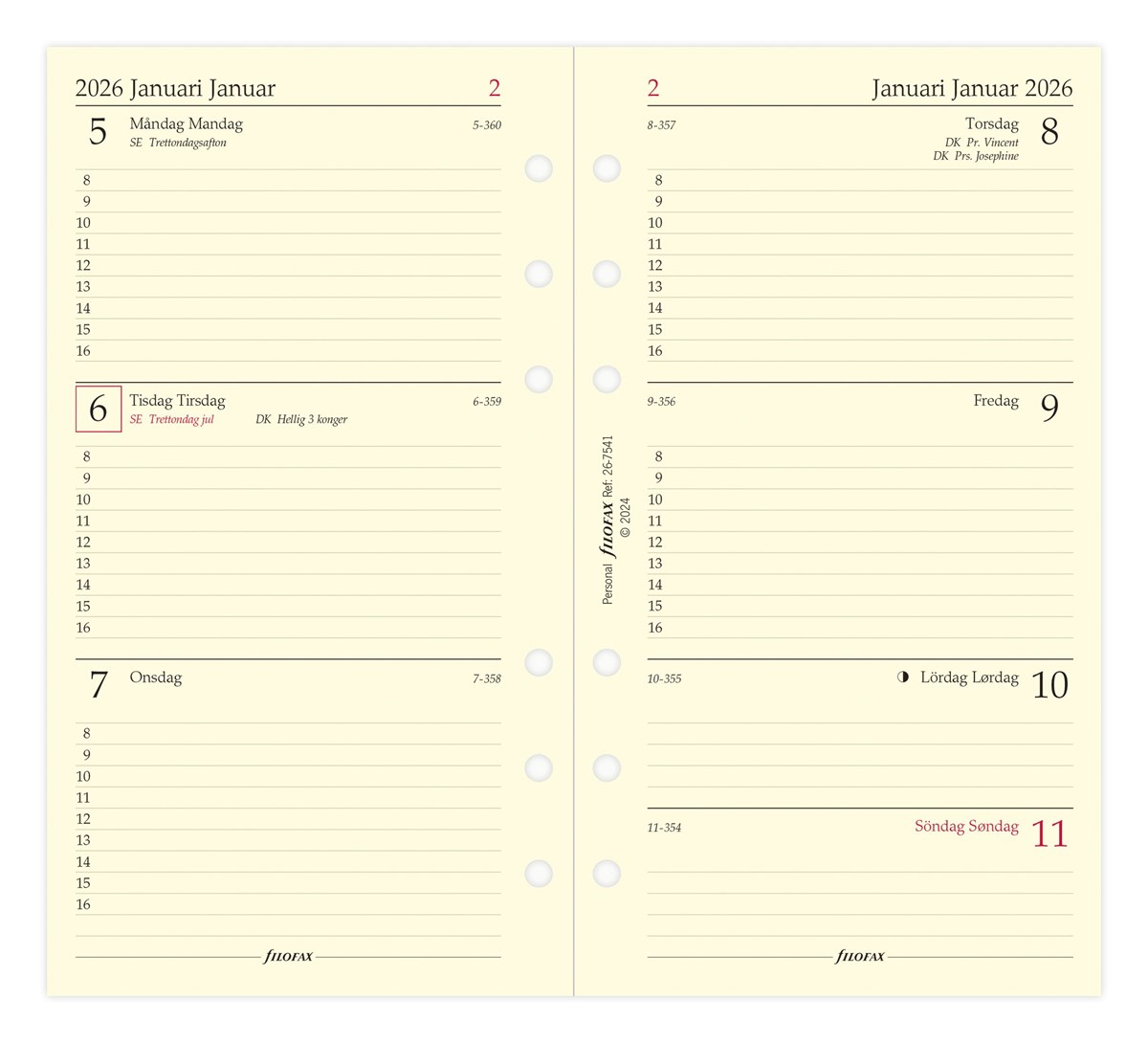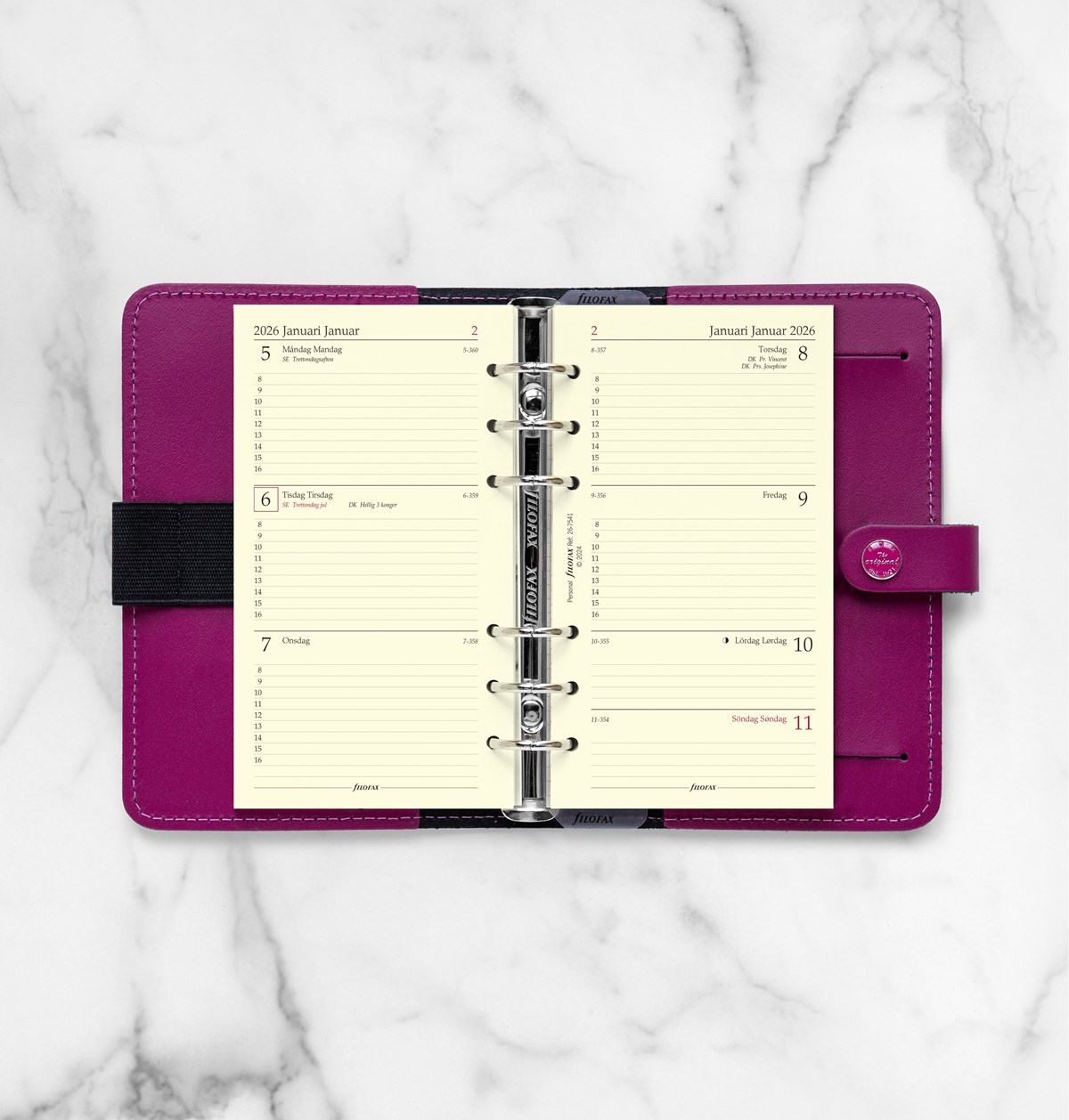 Påfyllning för det nya året. Innehåller: Dagbok en vecka per uppslag, årsplan, linjerade och rutade blad. 3-språkig (svenska, danska och norska).