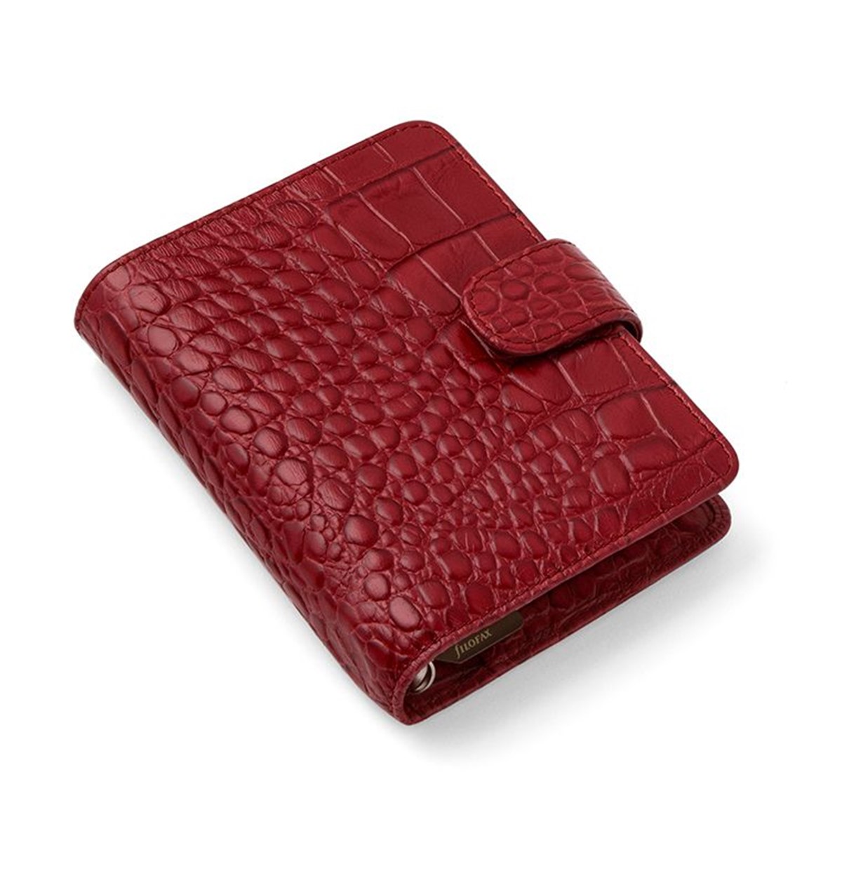Härligt mjuk pärm tillverkad av lyxigt italienskt kalvskinn med krokodilmönster. Rustad med stor ficka för lagring av större anteckningar. Dagbok vecka per uppslag, linjal/sidomarkör, att göra lista, kontakter, index, vit anteckningsblock, färgad anteckningsblock.