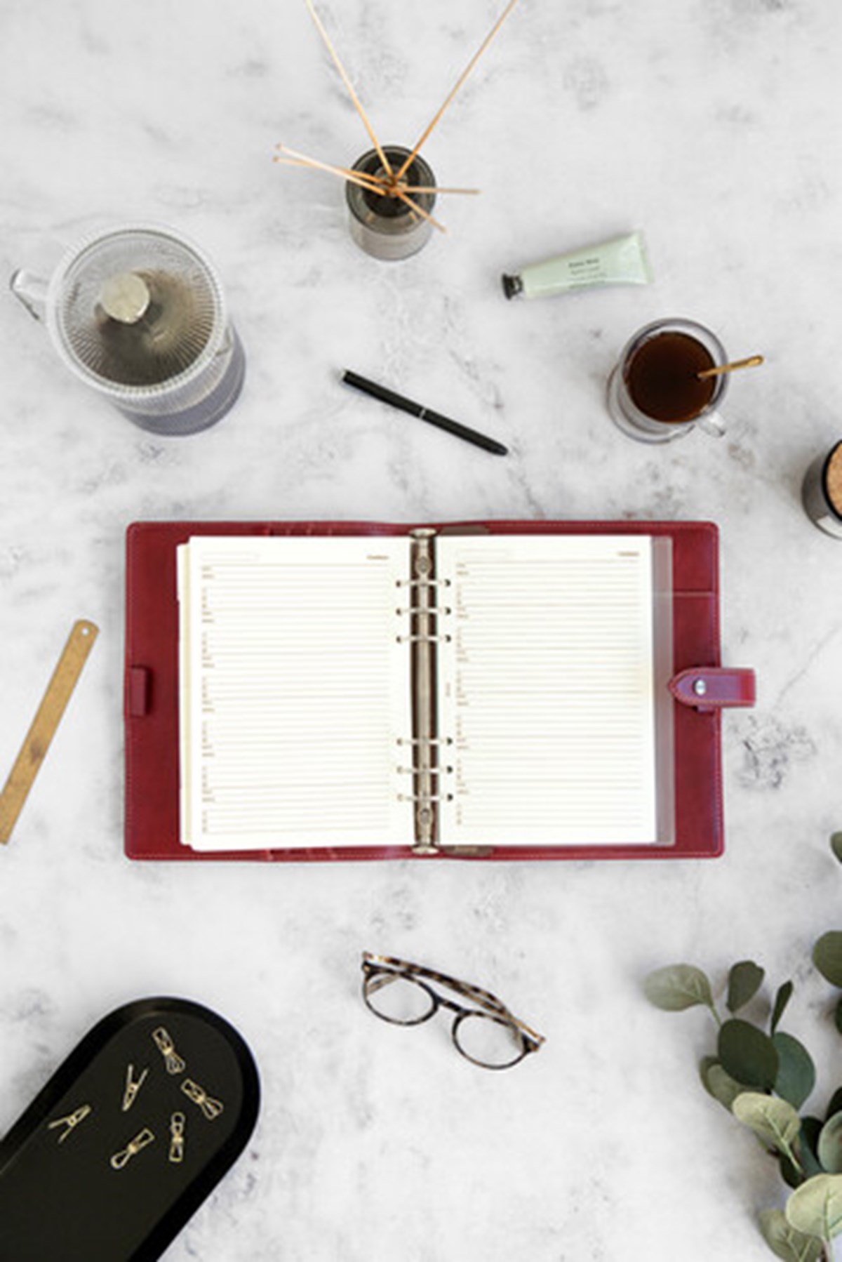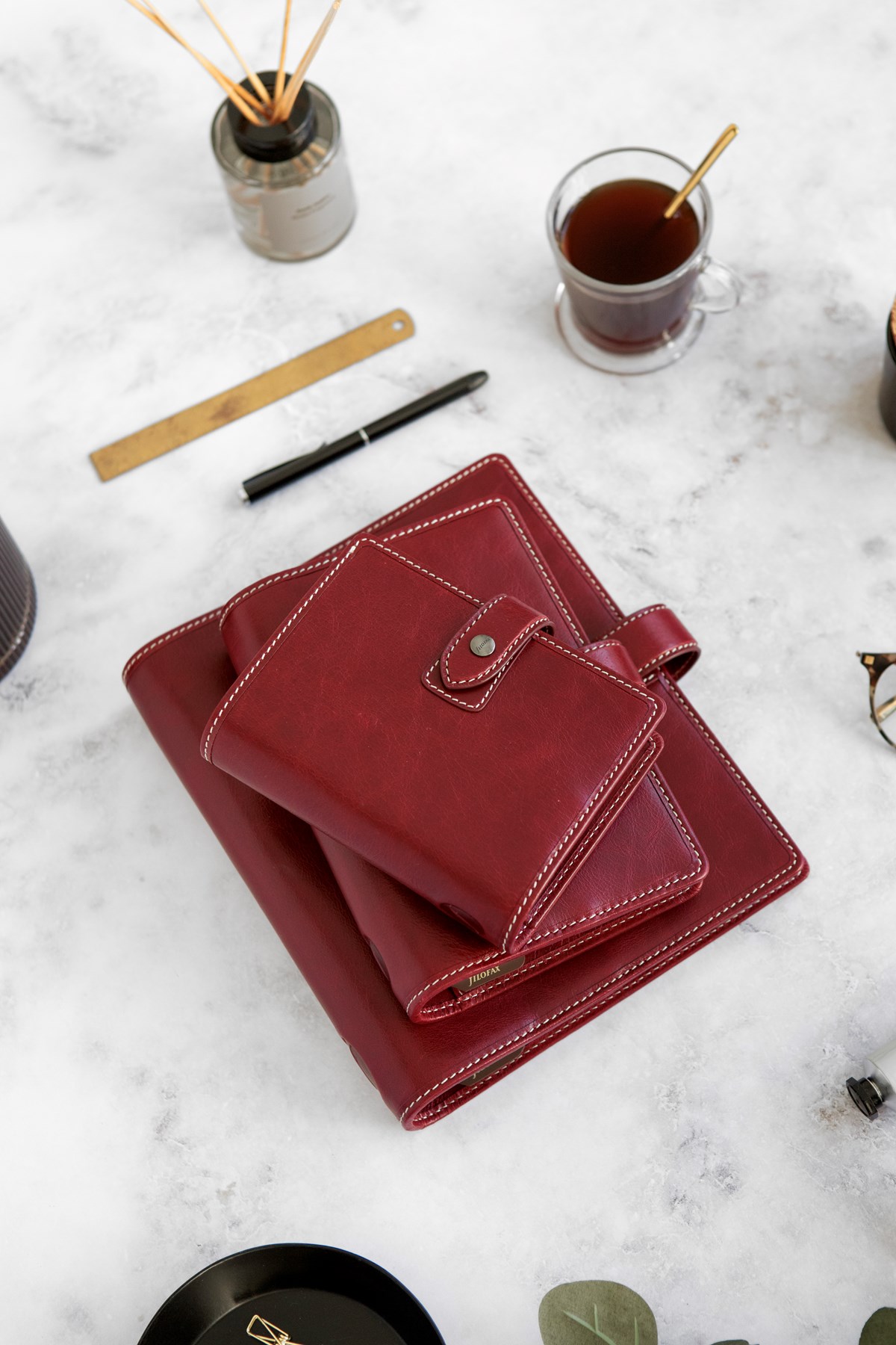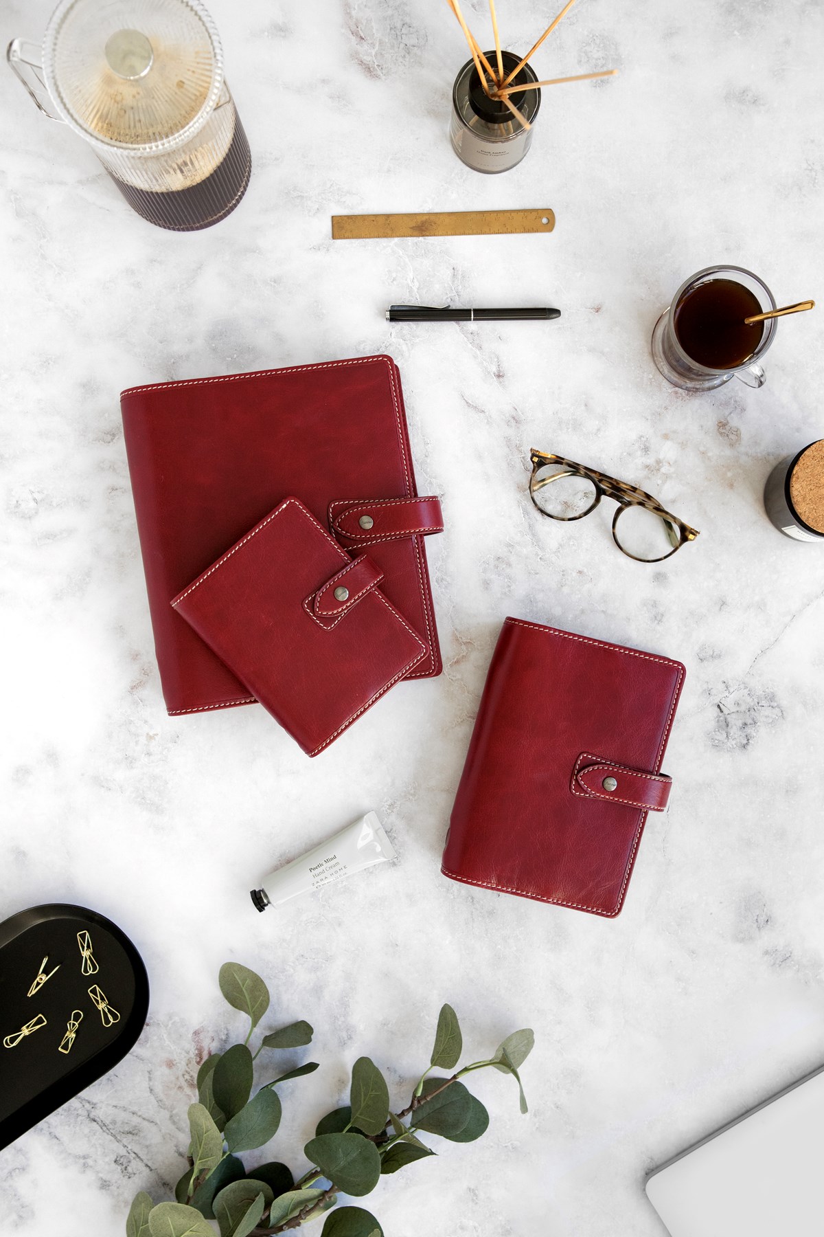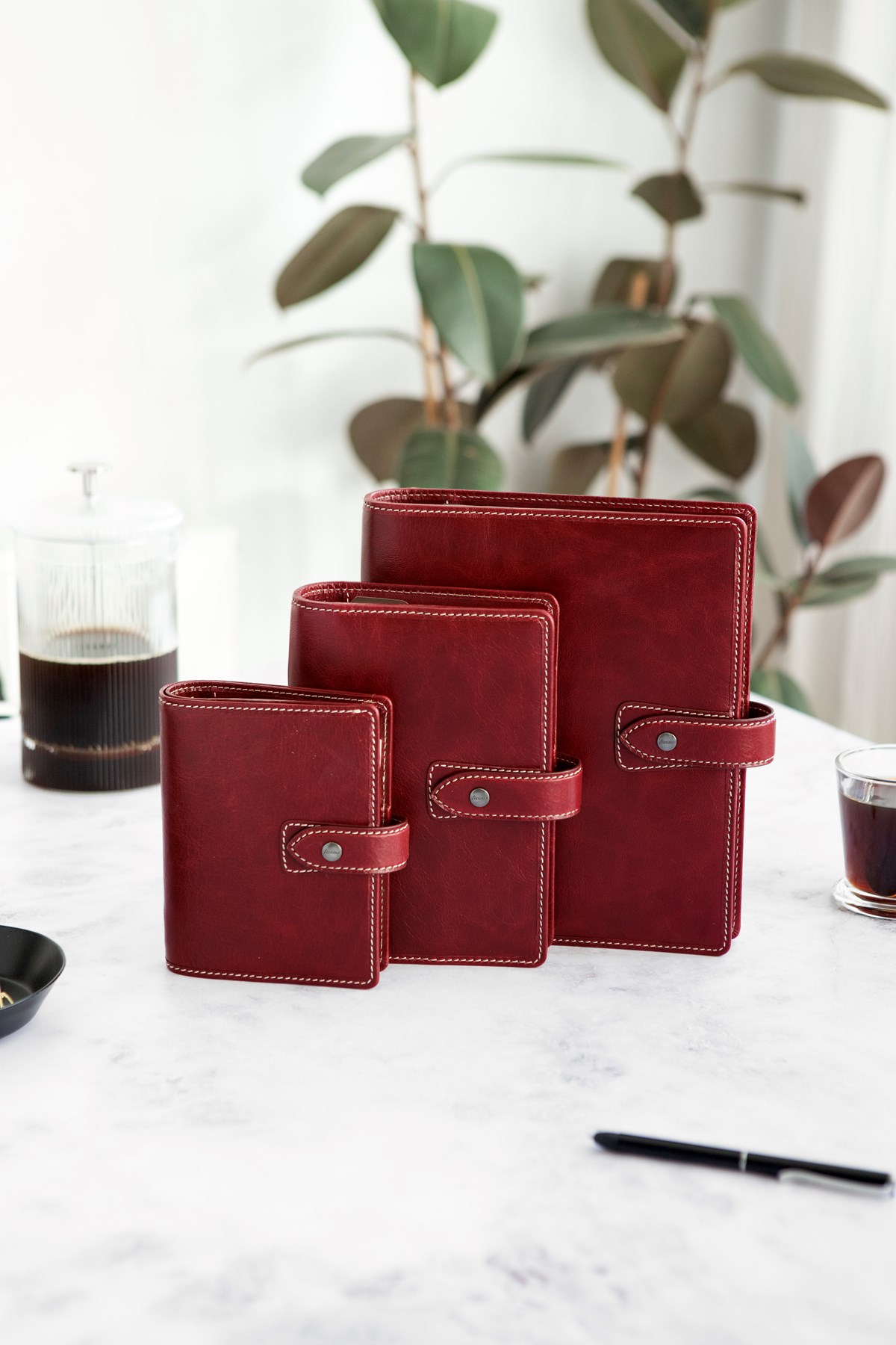Vackert buffelläder Kontrastsömmar Pennhållare Premium fyllning av odaterade tillbehör Dagbok vecka per uppslag