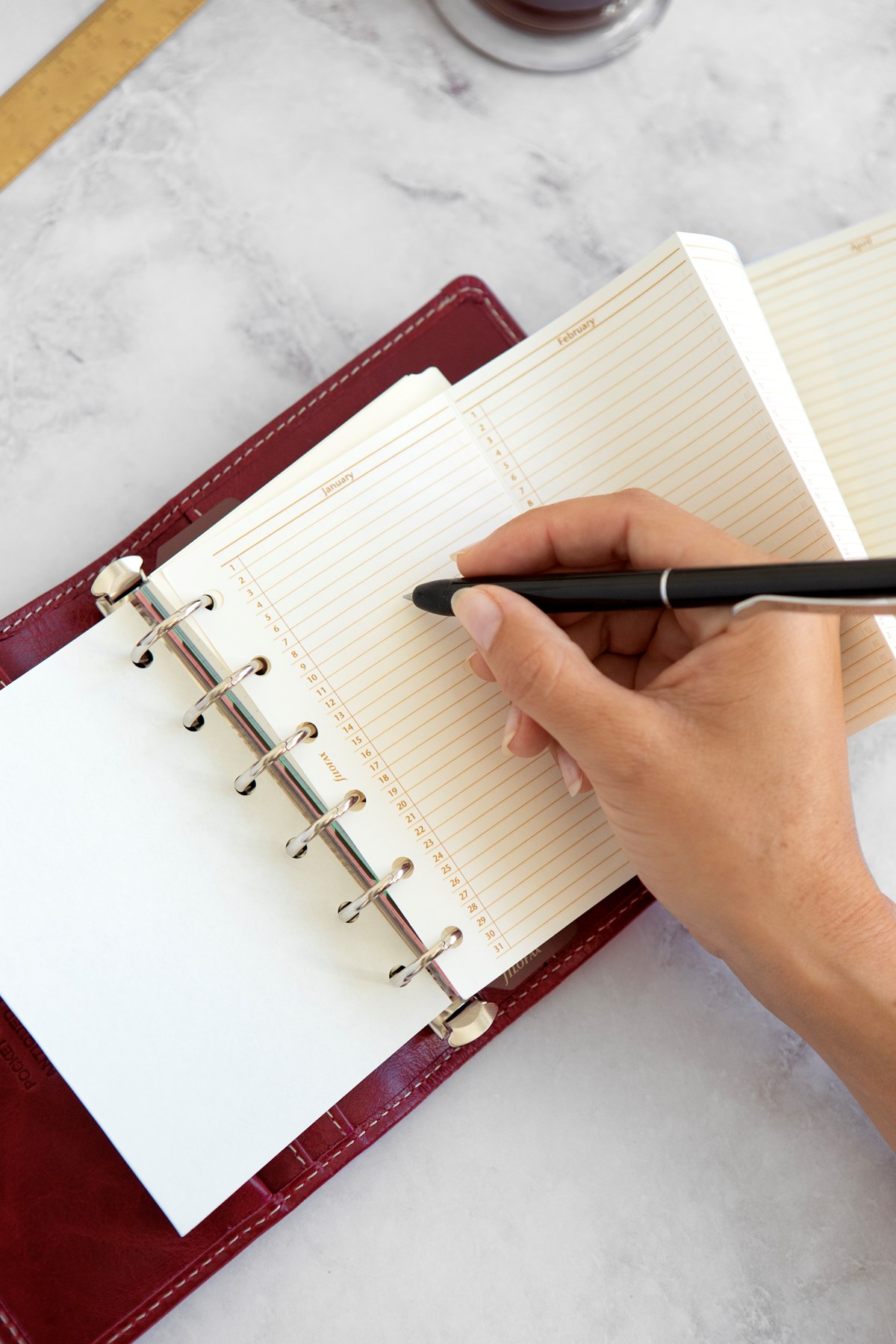 Malden systemkalender i ett delikat premiumläder. Rustik, men ändå mjuk och följsam med kraftig dekorsöm och slejp. Praktisk ficka med dragkedja på insidan. 30 mm ringmekanism. Pappersstorlek: 148x210 mm. Pärmstorlek: 235x224x48 mm.