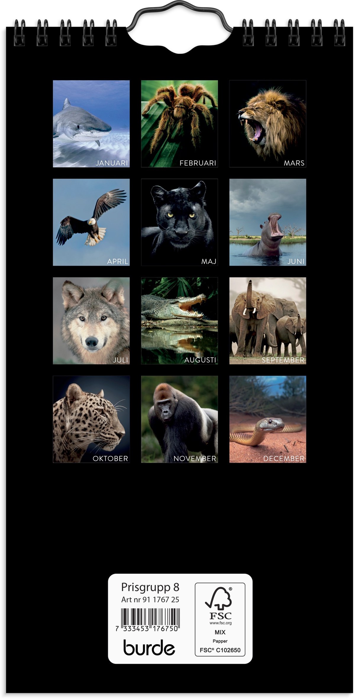 Bildkalender i litet format för din vägg. Kalendern innehåller bilder på vilda djur.