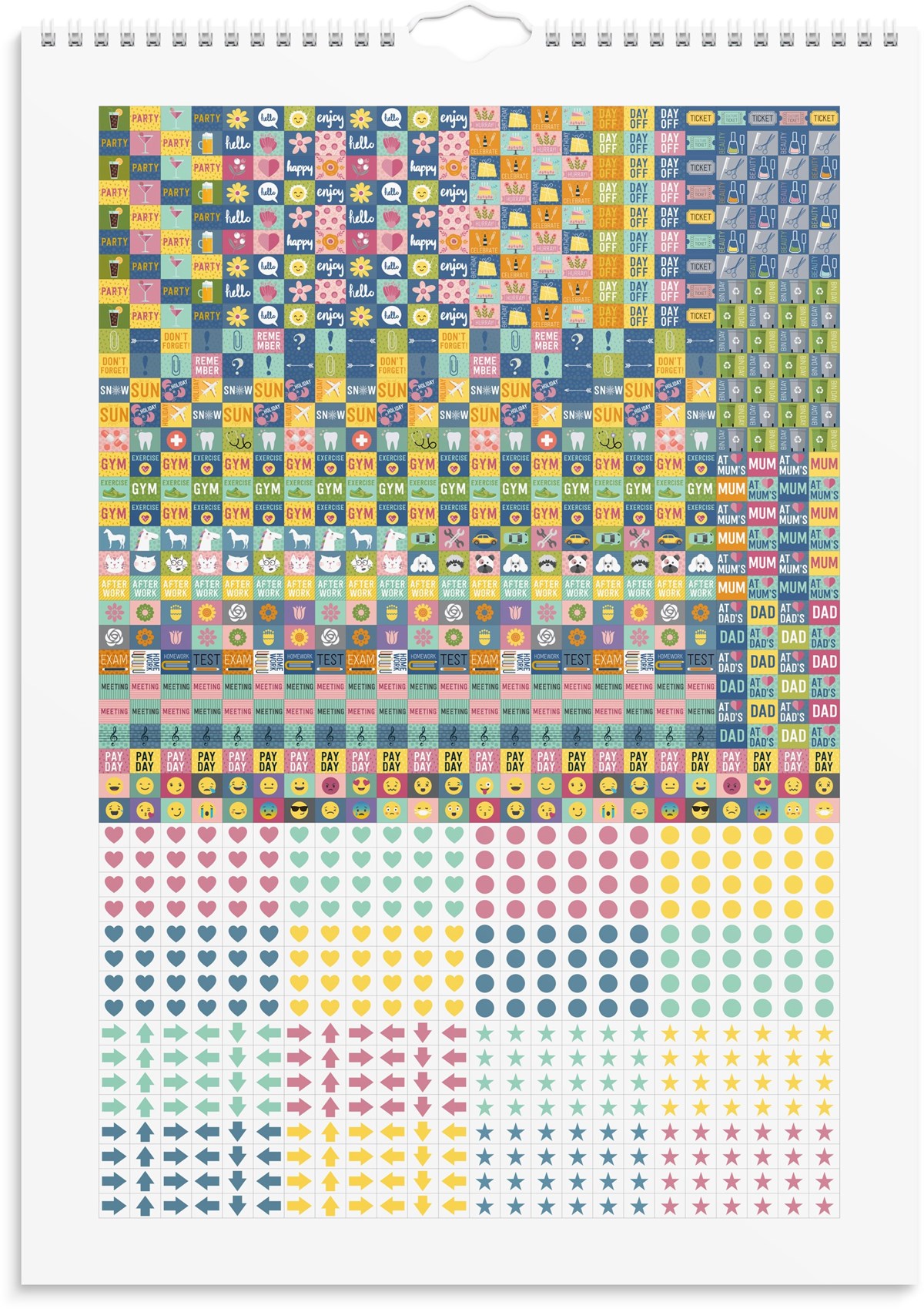 Doodle vägg är en kalender i A3-format som hjälper dig att styra upp din månad på ett effektivt och kreativt sätt. Väggkalendern ger dig utrymme att anteckna, skapa listor, färglägga och dekorera med medföljande stickers. Skapa en personlig kalender där det är kul att planera!