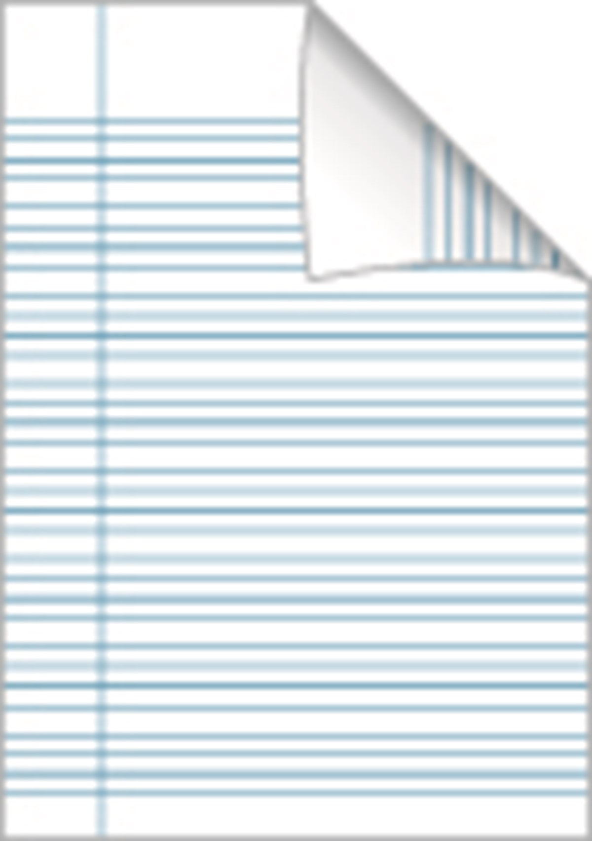 Skolhäfte i 60 g papper. A5-format. Linjeringsdetaljer: 5+5+5+7 mm / 32 linjer. 24 blad.