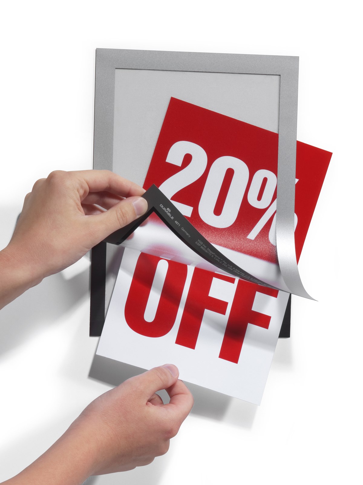 • Innehållet kan snabbt sättas in och bytas ut tack vare den öppningsbara magnetramen.