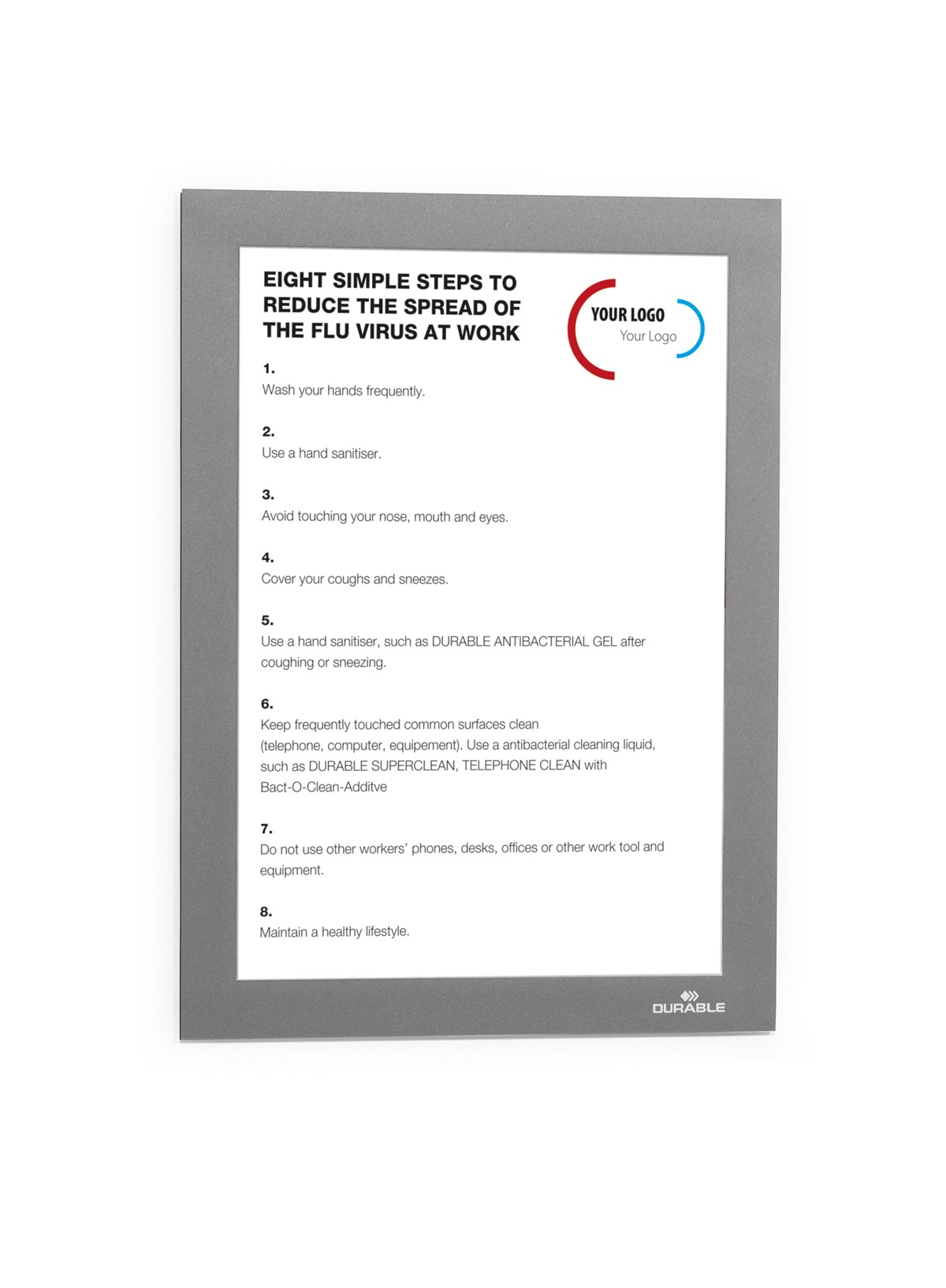 • Kan fästas på alla fasta och släta ytor. Vid användning på glas är informationen läsbar från båda sidor. Undvik att fästa på ytor som tapeter, porösa material och non-stick-ytor. Målade ytor kan ev. skadas om ramen tas bort.