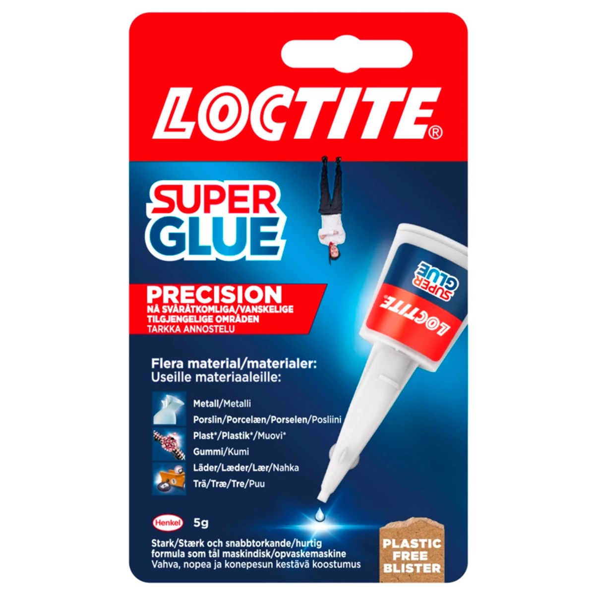 Starkt universellt superlim som limmar de flesta material på några sekunder. Extra långt munstycke för svåråtkomliga ytor. Limmar droppfritt och ger en osynlig limfog. Unik och behändig förpackning med unik kork som hindrar att limmet torkar i pipen. Tål maskindisk, stötar och temperaturer från -50°C upp till 120°C Flaska med 5 gram.