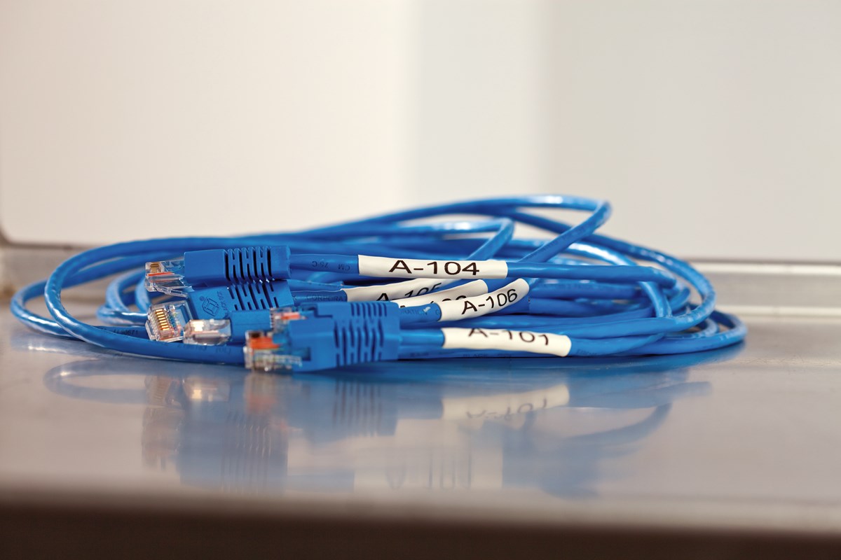 Krympfaktor på 3:1, perfekt passning på sladdar och kablar. Längd: 2,7 m. Svart text/vit tejp.