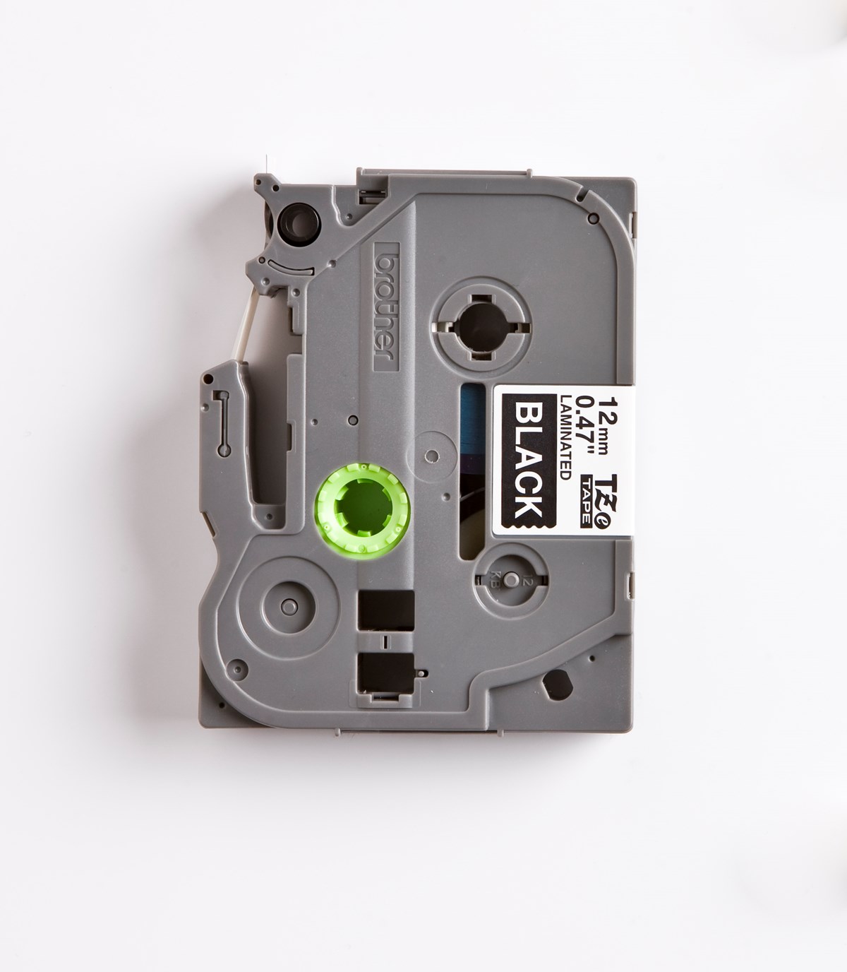 TZe tapekassetter är enkla att installera, finns i olika bredder, färger och material och säkerställer att din P-touch-märkmaskin uppfyller dina märkningsbehov. Mått: 12 mm x 8 m.