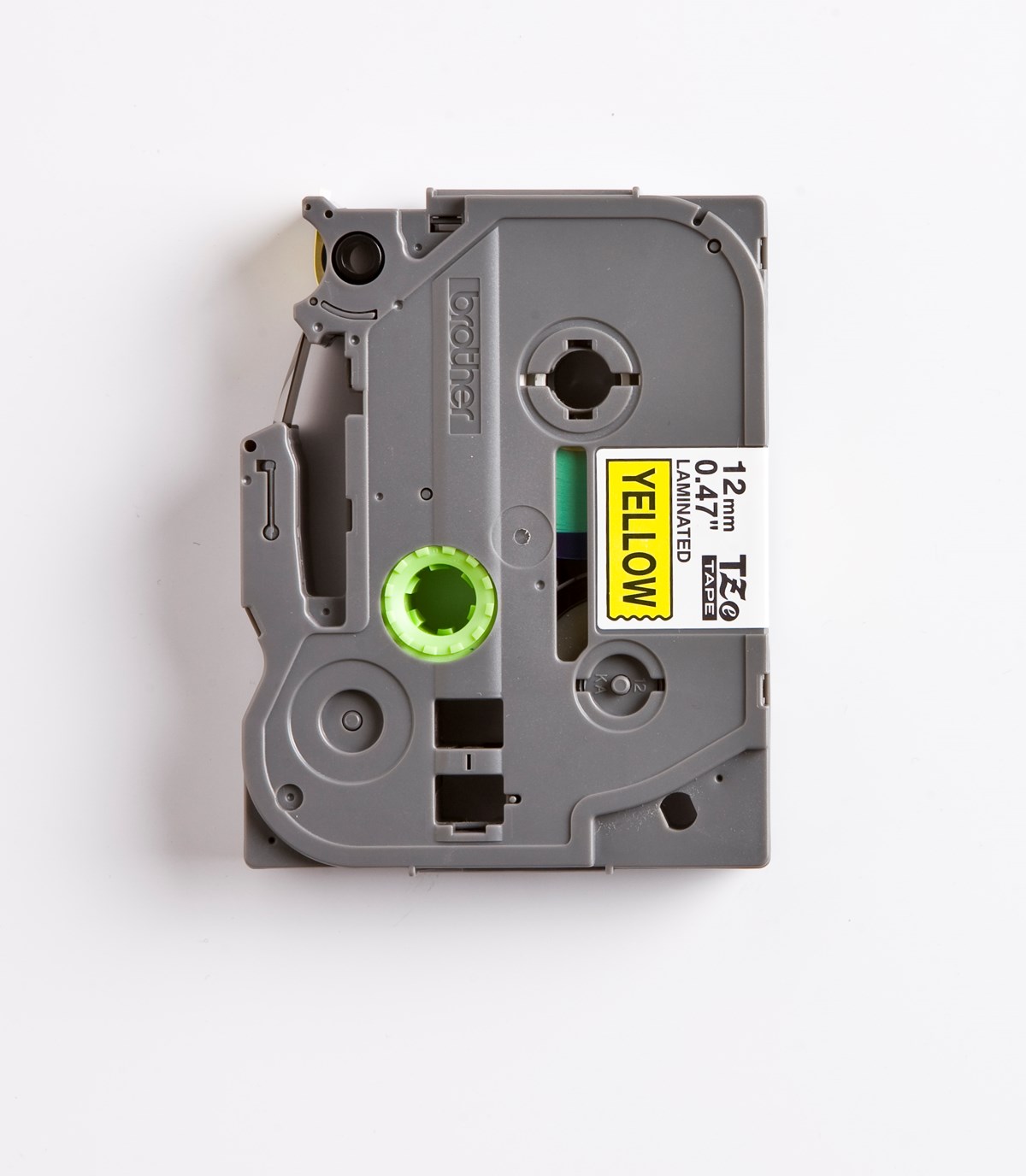 TZe tapekassetter är enkla att installera, finns i olika bredder, färger och material och säkerställer att din P-touch-märkmaskin uppfyller dina märkningsbehov. Mått: 12 mm x 8 m.