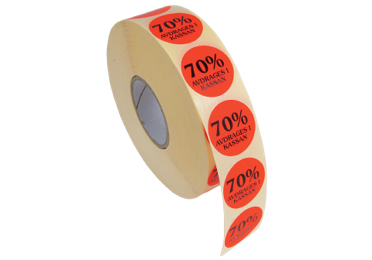 Rabattetiketter 70% avdrages i kassan