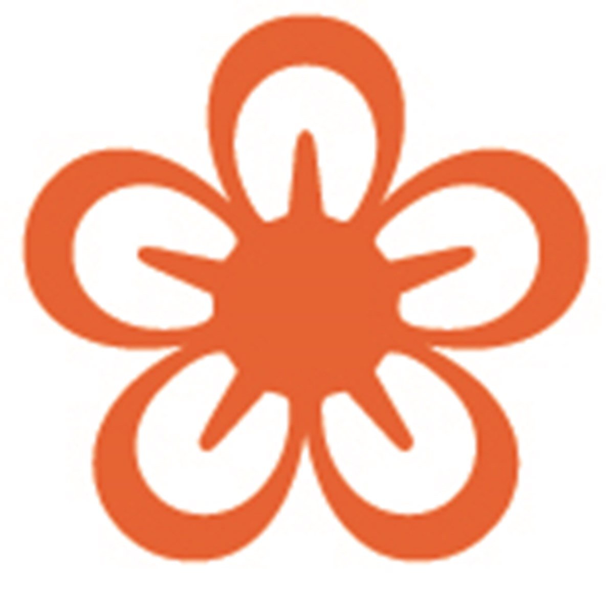 Kontrollstämpel med standardtext och inbyggd färgdyna med röd färg. Motiv: "Blomma". Ø12 mm.