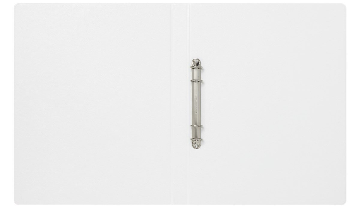 Av ultraljudsvetsad polypropylen. Pärmsidorna limmade på bägge sidor - inga bubblor. Triomekanism fastnitad på höger insida. Transparent ficka på framsida och rygg. A4-format, ryggbredd 20 mm, 16 mm ringmekanismen.