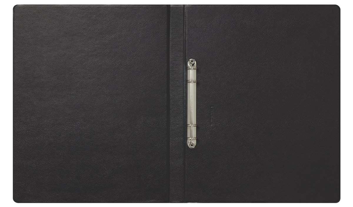 Av ultraljudsvetsad polypropylen. Pärmsidorna limmade på bägge sidor - inga bubblor. Triomekanism fastnitad på höger insida. Transparent ficka på framsida och rygg. A4-format, ryggbredd 20 mm, 16 mm ringmekanismen.