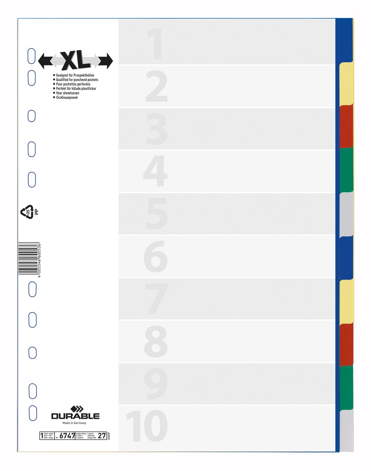 Otryckt pärmregister i PP-plast med olikfärgade blad samt försättsblad av kartong. Extra breda, kan därför användas tillsammans med underregister eller plastfickor. Multihålade. 20 st/förp.