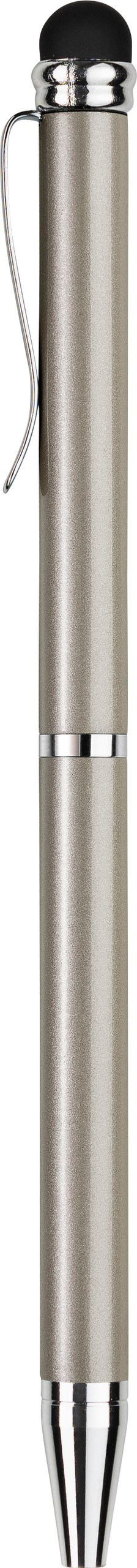 En kulspetspenna med en praktisk touch topp för din telefon eller surfplatta. Touchfunktionen är längst upp på pennan. Det är ett litet praktiskt verktyg för din kalender och underlättar din planering i teknikens värld. Nu tillgänglig i ett flertal metalliska färger! Pennan har blått bläck.Längd 11 cm.