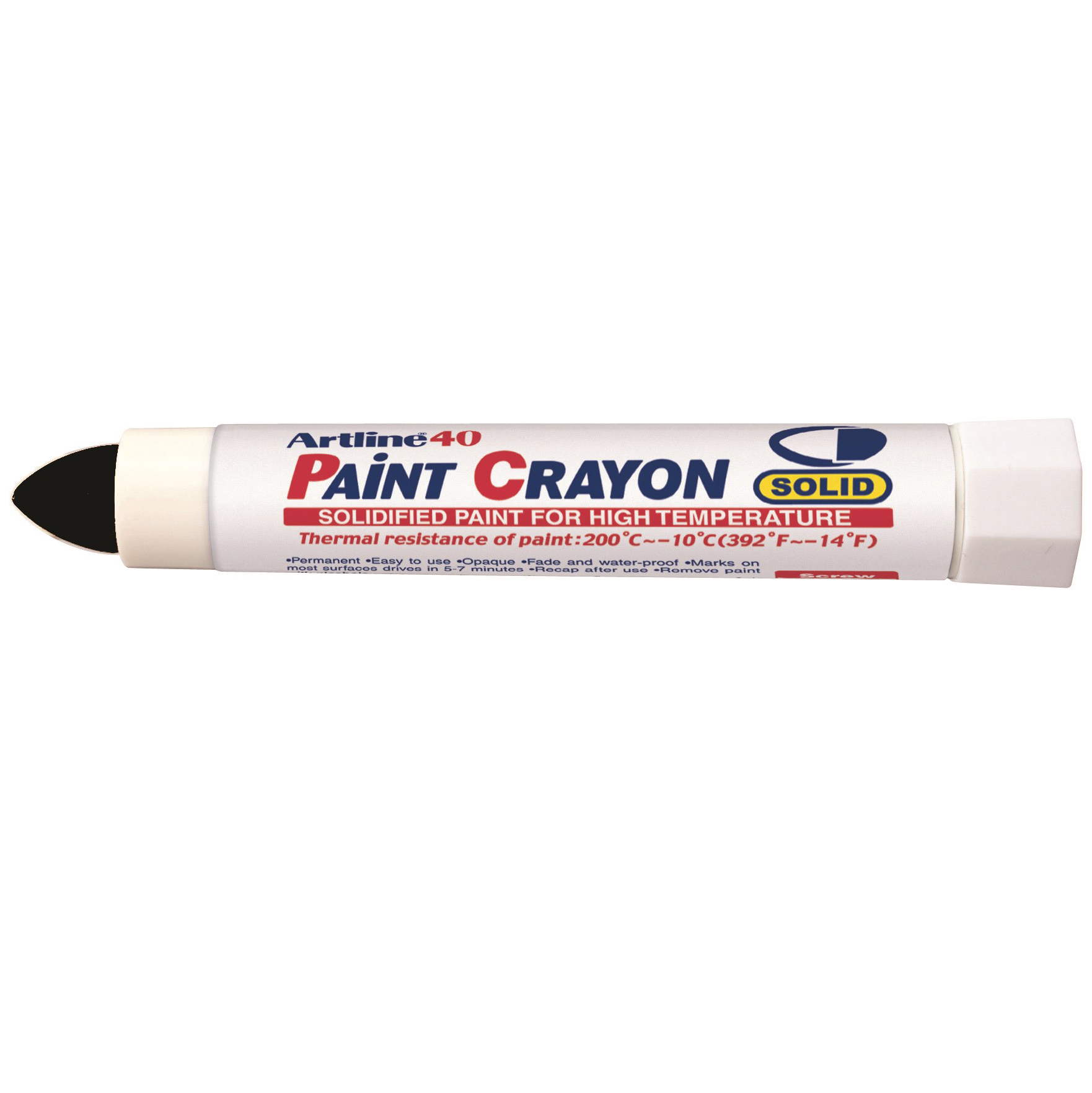 Pastapenna med kraftigt täckande färg. Permanent, färgbeständig och vattenfast. Lätt att använda. Skriver i värme upp till 200 grader och i kyla ner till -10 grader. För märkning på de flesta underlag. Torkar på 5–7 minuter. Fungerar även på ljusa, mörka, smutsiga och feta ytor. Ljusäkta, tål nötning och är väderbeständig. 12 st/förp.