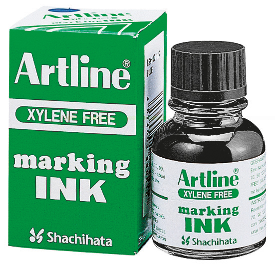 Kort märkpenna med pennkropp av aluminium och hårdpressad, snedskuren filtspets. För permanent märkning på de flesta underlag. Snabbtorkade, vattenfast, alkoholbaserat permanent tusch utan Xylen. Påfyllningsbar. 3-6 mm spetsbredd.