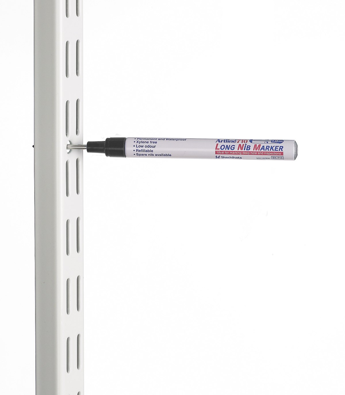 Artline EK-710 long nib är den ultimata lösningen för precisionsmärkning i svåråtkomliga områden! Med sin 30 mm långa spets och 2,8 mm runda stålrörförstärkta akrylspets är den perfekt för att nå djupa hål och smala skenor.