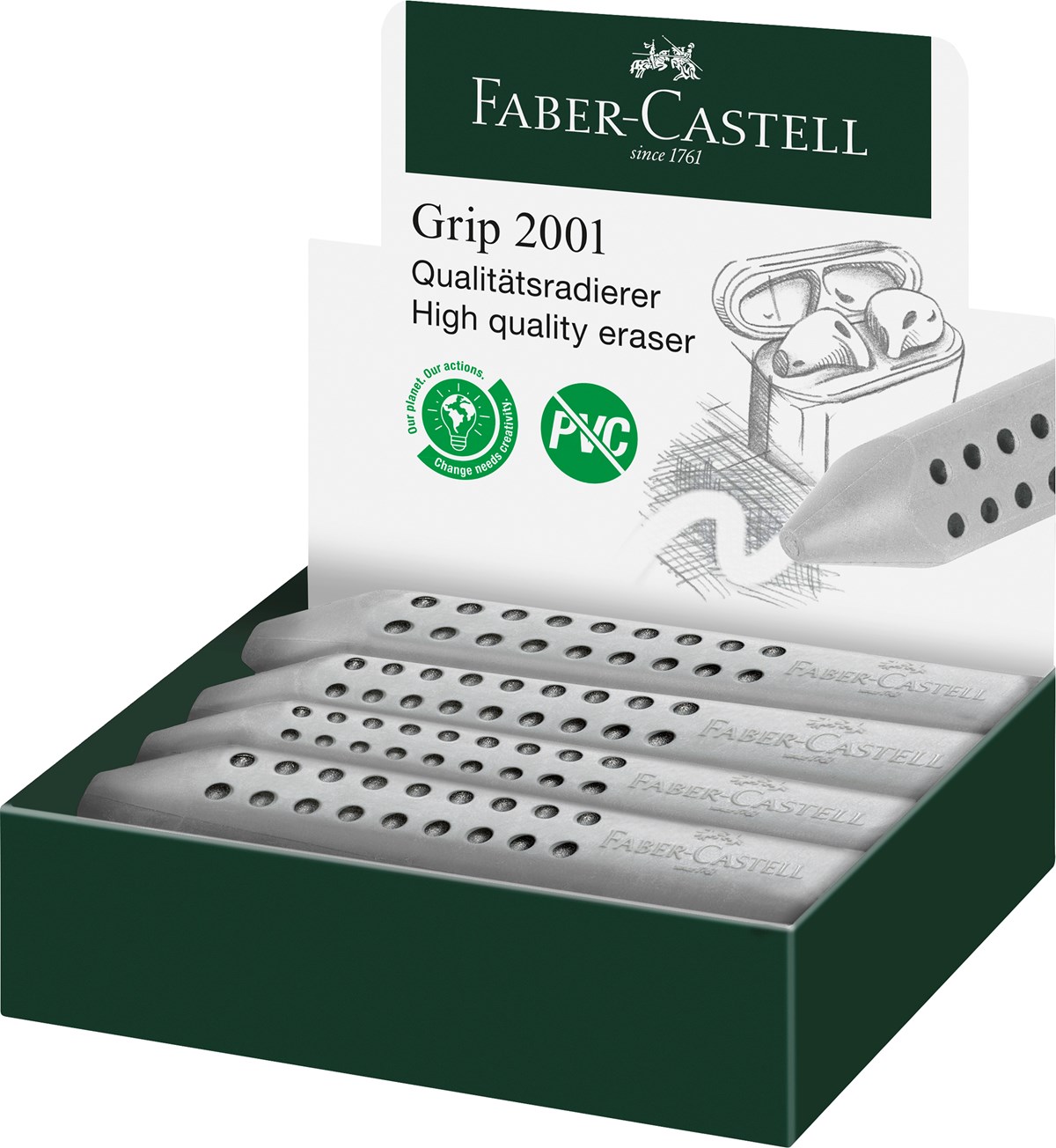Grip 2001 triangulärt radergummi med grip-zone ger möjlighet till att sudda precis och rent. Det halkfria greppet och den trekantiga formen gör att den passar bra för både höger och vänsterhänta och ger full kontroll. PVC-fritt.