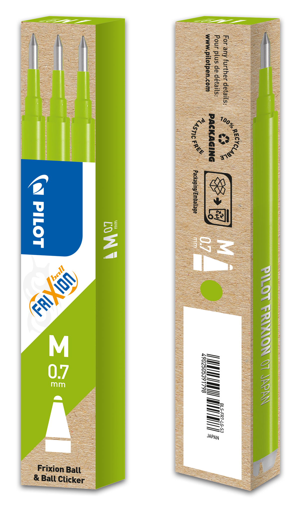 Alla Frixion-pennor är påfyllnadsbara, vilket betyder att du inte behöver köpa en ny penna när bläcket är slut. Raderbart bläck. Passar Pilot Frixion Clicker och Pilot LX. 3 st/förp.