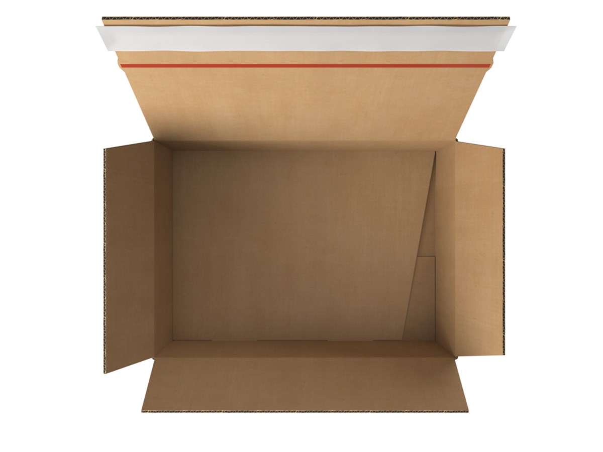 E-handelslåda speciellt framtagna för försändelser. Lådorna har snabbotten som gör det lätt att resa och göra lådan redo för packning. En stark bottenlåsning som ger en stabil grund och en smart tejpremsa som ger en enkel och snabb förslutning. Lådan öppnas enkelt och smidigt med en rivremsa som dessutom gör det möjligt att återanvända lådan vid en eventuell retur. Lådan har en lätt vikt utan att ha tummat på kvalitén.