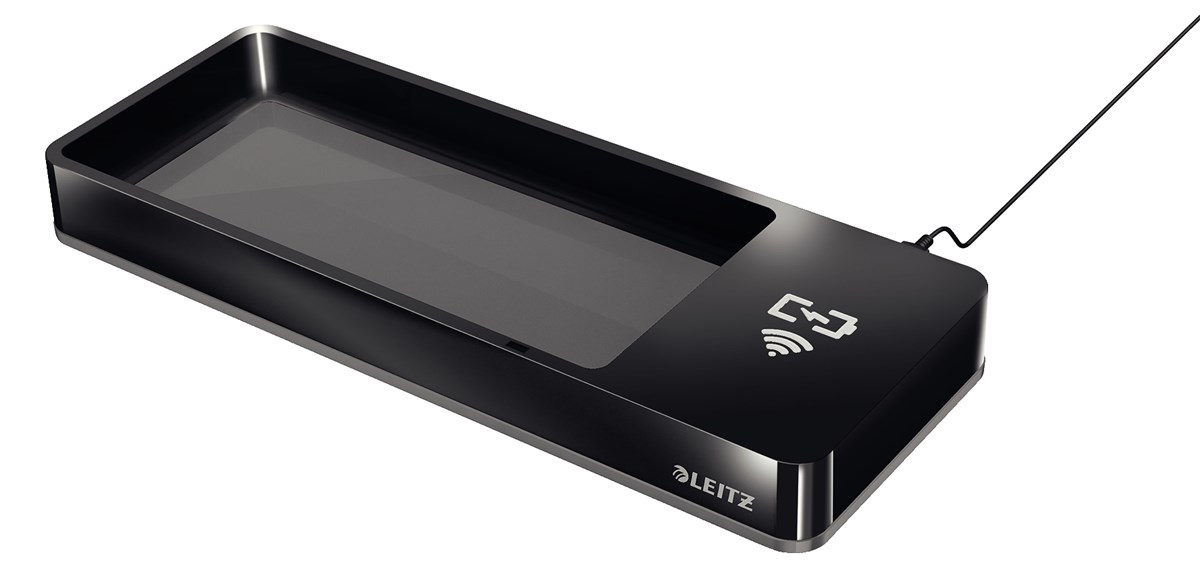 Pennfack med praktisk induktionsladdare. Med den trådlösa Qi-laddaren kan du ladda din mobiltelefon utan kabel (kräver att telefonen stödjer detta). När telefonen är fulladdad slutar enheten att ladda. USB-kabel för strömtillförsel medföljer. Mått: 266x28x101 mm.